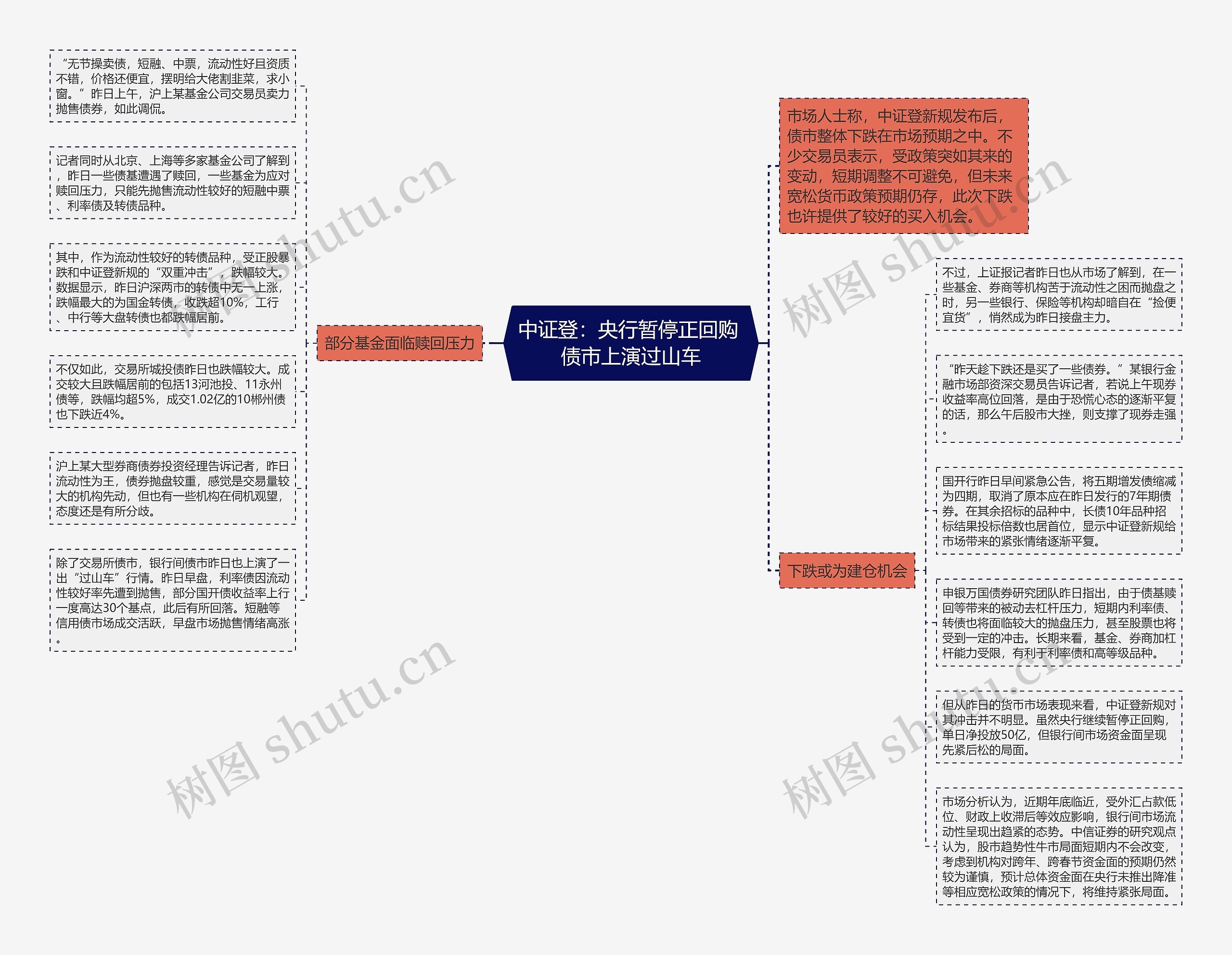 树图思维导图提供《中证登:央行暂停正回购 债市上演过山车》在线思维导图免费制作,点击“编辑”按钮,可对《中证登:央行暂停正回购 债市上演过山车》进行在线思维导图编辑,本思维导图属于思维导图模板主题,文件编号是:fc176c362d3f71249da19d0f9b07a5c9