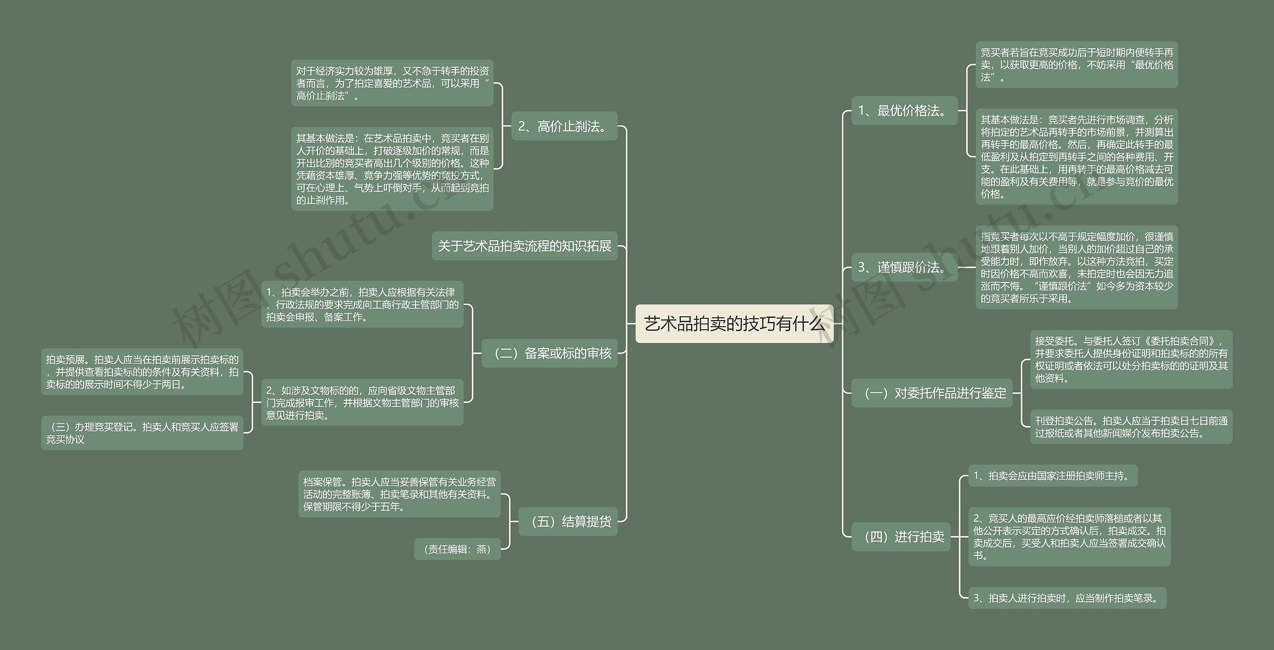 树图思维导图提供《艺术品拍卖的技巧有什么》在线思维导图免费制作,点击“编辑”按钮,可对《艺术品拍卖的技巧有什么》进行在线思维导图编辑,本思维导图属于思维导图模板主题,文件编号是:cccc7d10edf72fd8c1247a8fd98f8a46