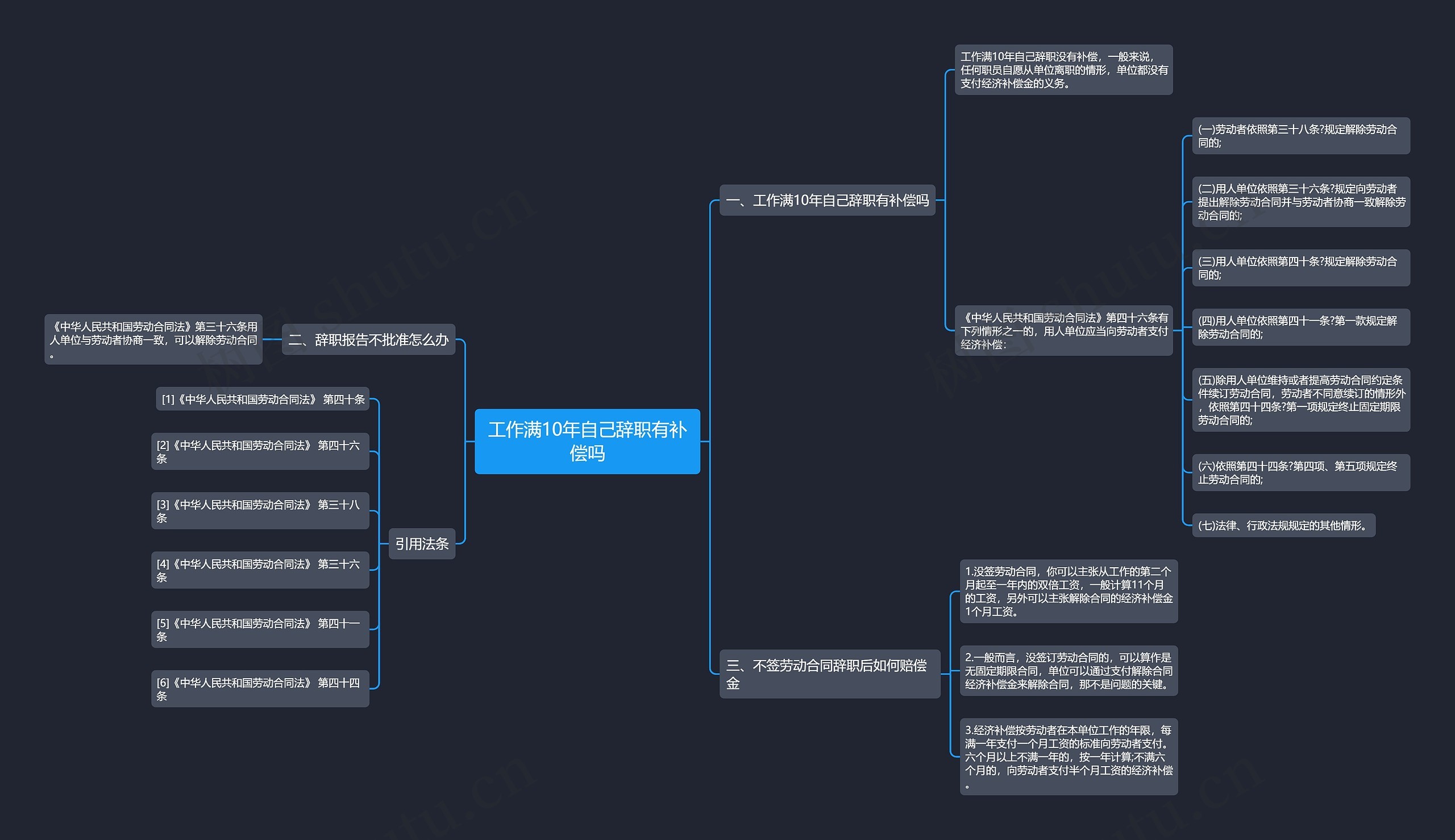 树图思维导图提供《工作满10年自己辞职有补偿吗》在线思维导图免费制作,点击“编辑”按钮,可对《工作满10年自己辞职有补偿吗》进行在线思维导图编辑,本思维导图属于思维导图模板主题,文件编号是:8396e068bcb372b47614d834c78ced24