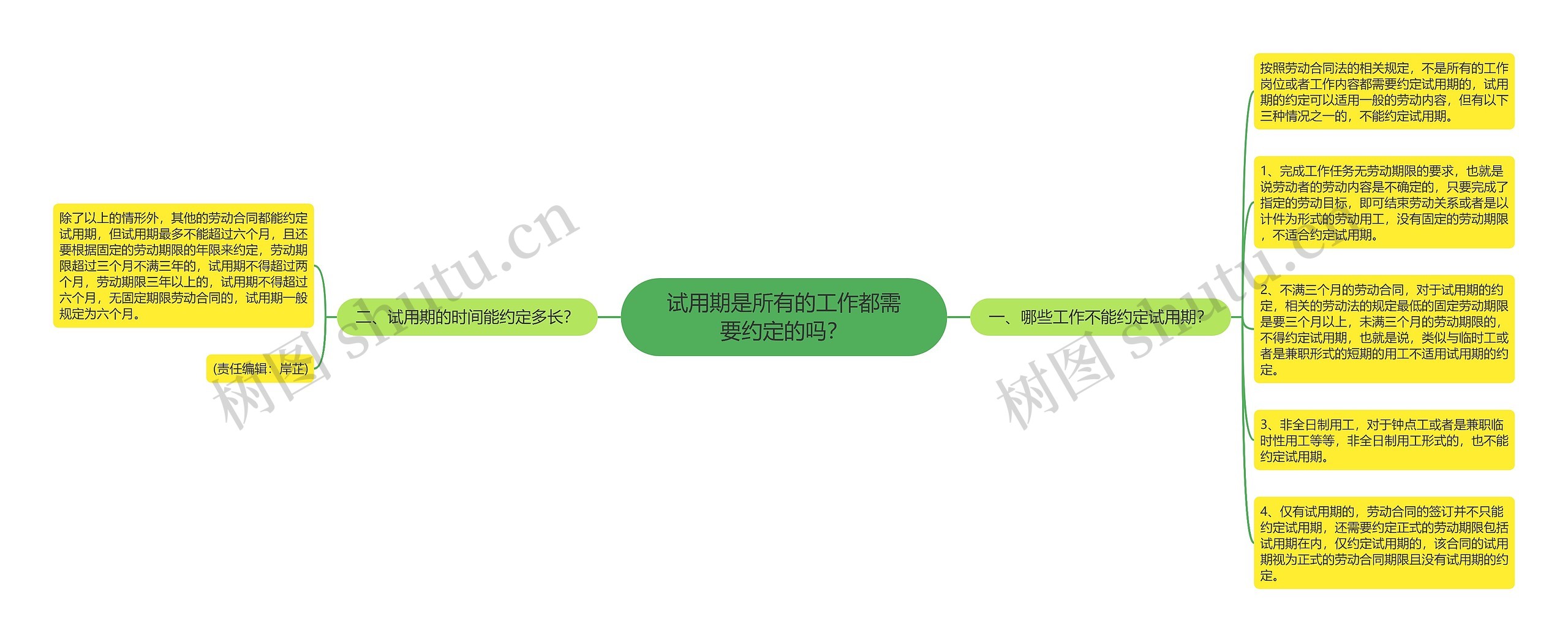 树图思维导图提供《试用期是所有的工作都需要约定的吗?》在线思维导图免费制作,点击“编辑”按钮,可对《试用期是所有的工作都需要约定的吗?》进行在线思维导图编辑,本思维导图属于思维导图模板主题,文件编号是:aeb1b8b69e576248ba15e39b3af23482