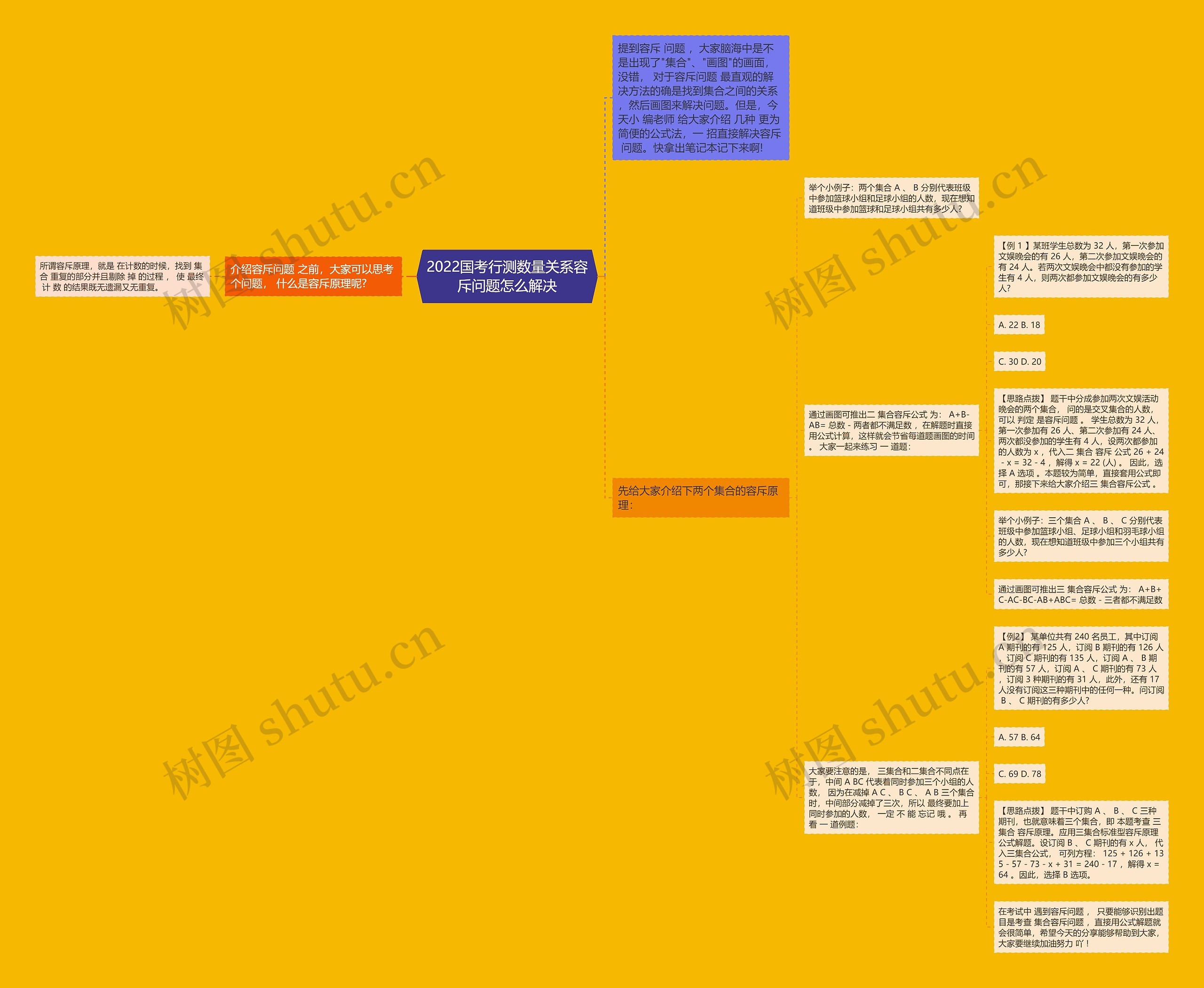 树图思维导图提供《2022国考行测数量关系容斥问题怎么解决》在线思维导图免费制作,点击“编辑”按钮,可对《2022国考行测数量关系容斥问题怎么解决》进行在线思维导图编辑,本思维导图属于思维导图模板主题,文件编号是:5a80f77eaeb2928f0e4636c90e15c8b6