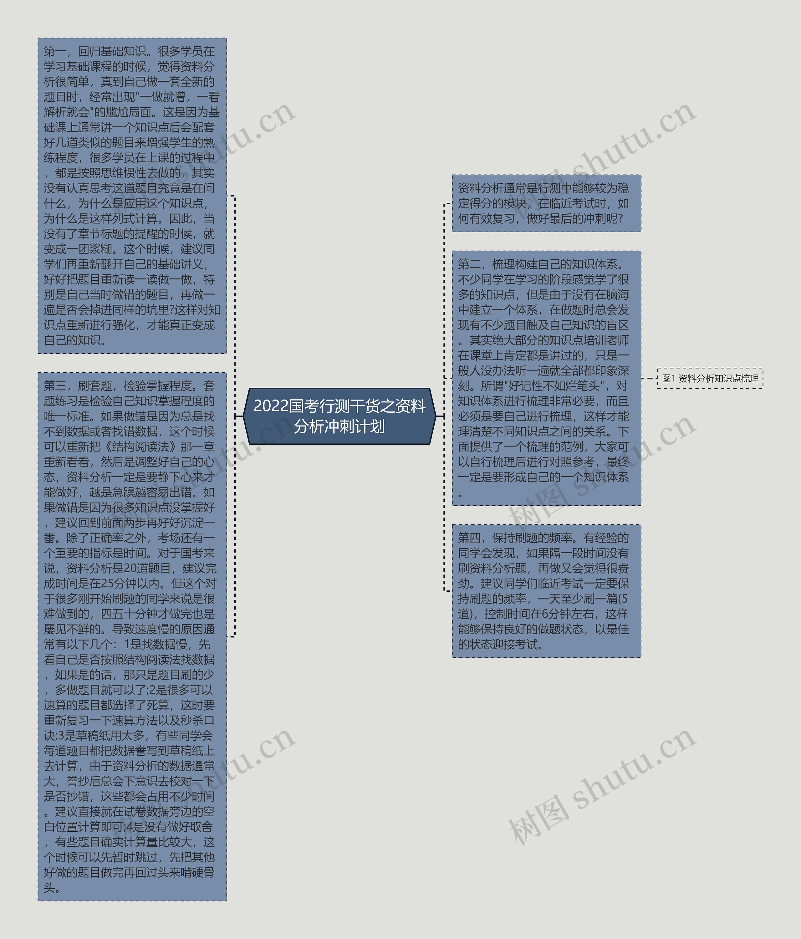 第二,梳理构建自己的知识体系。不少同学在学习的阶段感觉学了很多的知识点,但是由于没有在脑海中建立一个体系,在做题时总会发现有不少题目触及自己知识的盲区。其实绝大部分的知识点培训老师在课堂上肯定都是讲过的,只是一般人没办法听一遍就全部都印象深刻。所谓"好记性不如烂笔头",对知识体系进行梳理非常必要,而且必须是要自己进行梳理,这样才能理清楚不同知识点之间的关系。下面提供了一个梳理的范例,大家可以自行梳理后进行对照参考,最终一定是要形成自己的一个知识体系。
