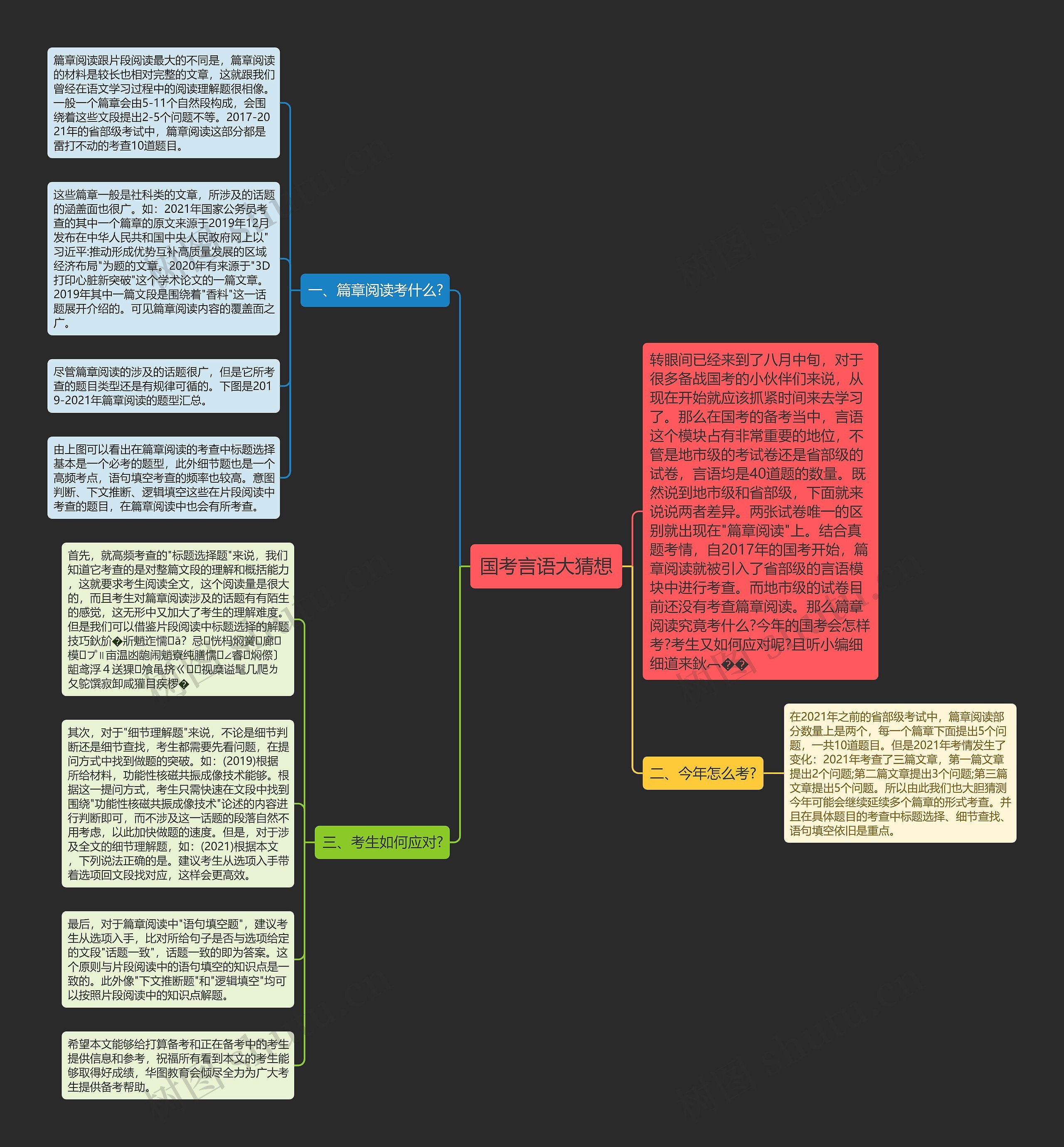 最后,对于篇章阅读中"语句填空题",建议考生从选项入手,比对所给句子是否与选项给定的文段"话题一致",话题一致的即为答案。这个原则与片段阅读中的语句填空的知识点是一致的。此外像"下文推断题"和"逻辑填空"均可以按照片段阅读中的知识点解题。