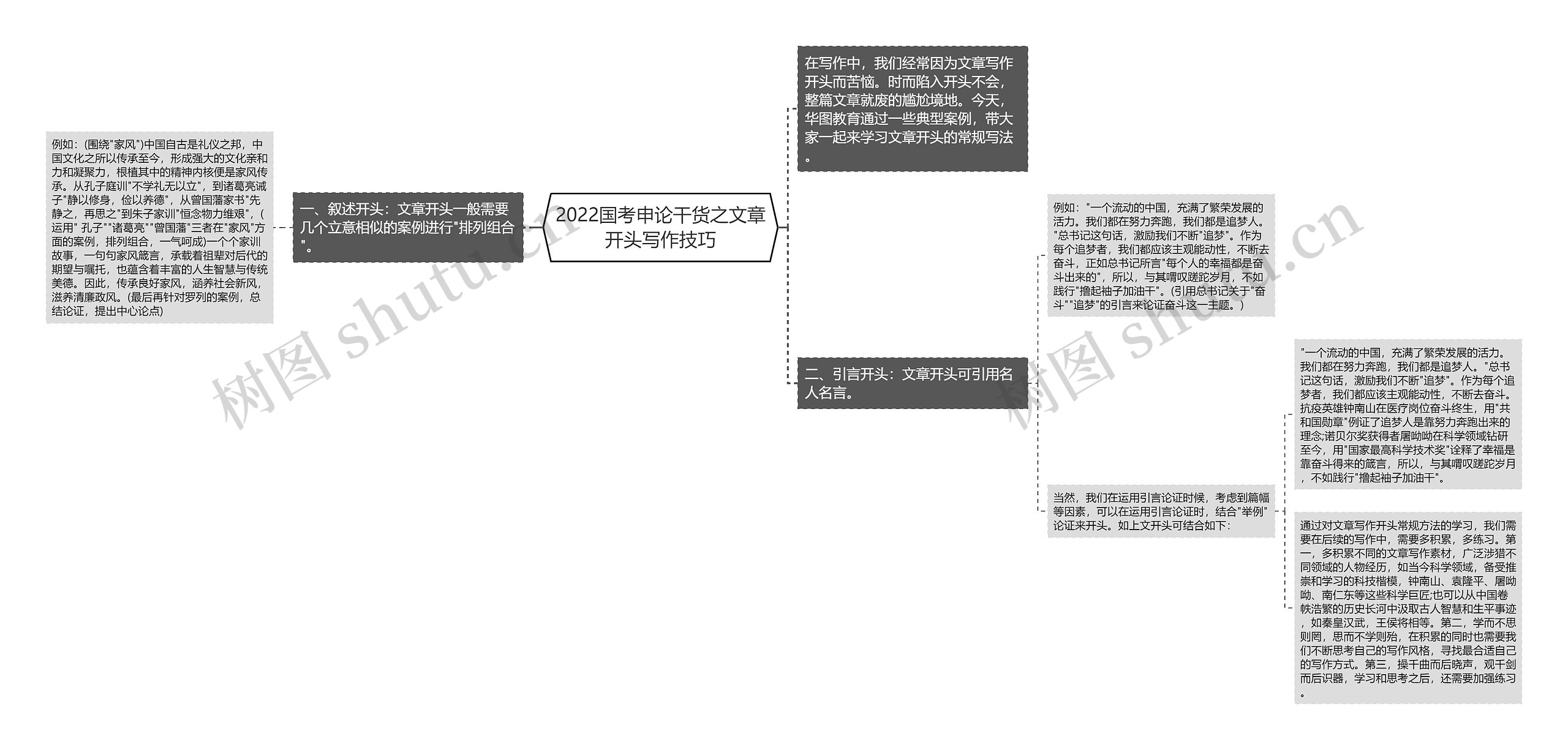 树图思维导图提供《2022国考申论干货之文章开头写作技巧》在线思维导图免费制作,点击“编辑”按钮,可对《2022国考申论干货之文章开头写作技巧》进行在线思维导图编辑,本思维导图属于思维导图模板主题,文件编号是:451a810a47ab6ab57fde8ad983524530