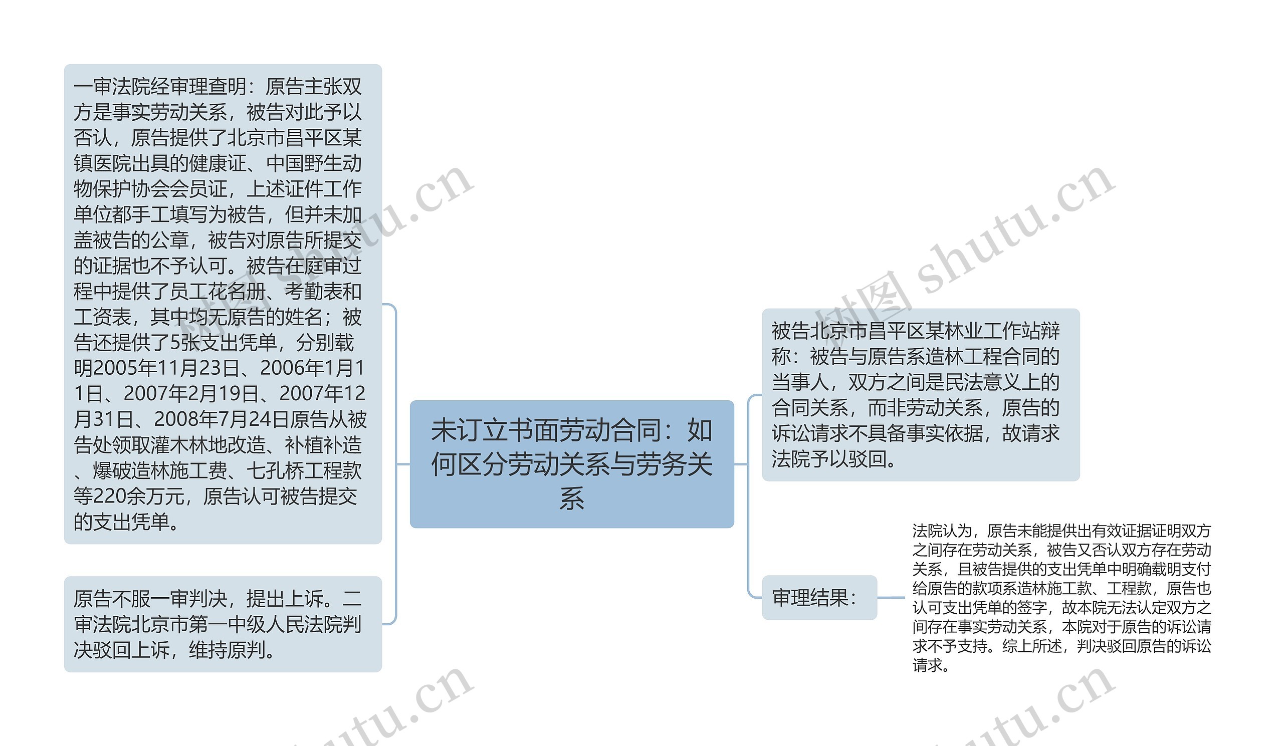 树图思维导图提供《未订立书面劳动合同:如何区分劳动关系与劳务关系》在线思维导图免费制作,点击“编辑”按钮,可对《未订立书面劳动合同:如何区分劳动关系与劳务关系》进行在线思维导图编辑,本思维导图属于思维导图模板主题,文件编号是:2da05e8ea3869c3a6cd46f21cd83a6d0