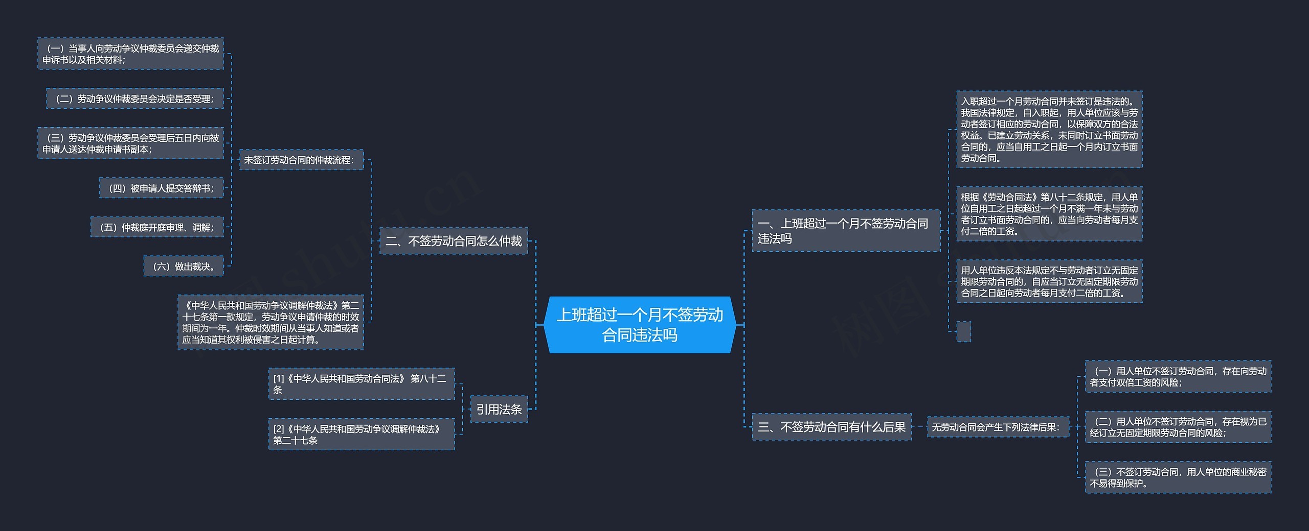 树图思维导图提供《上班超过一个月不签劳动合同违法吗》在线思维导图免费制作,点击“编辑”按钮,可对《上班超过一个月不签劳动合同违法吗》进行在线思维导图编辑,本思维导图属于思维导图模板主题,文件编号是:491f3f679c384dbfeb78b3087e630d34