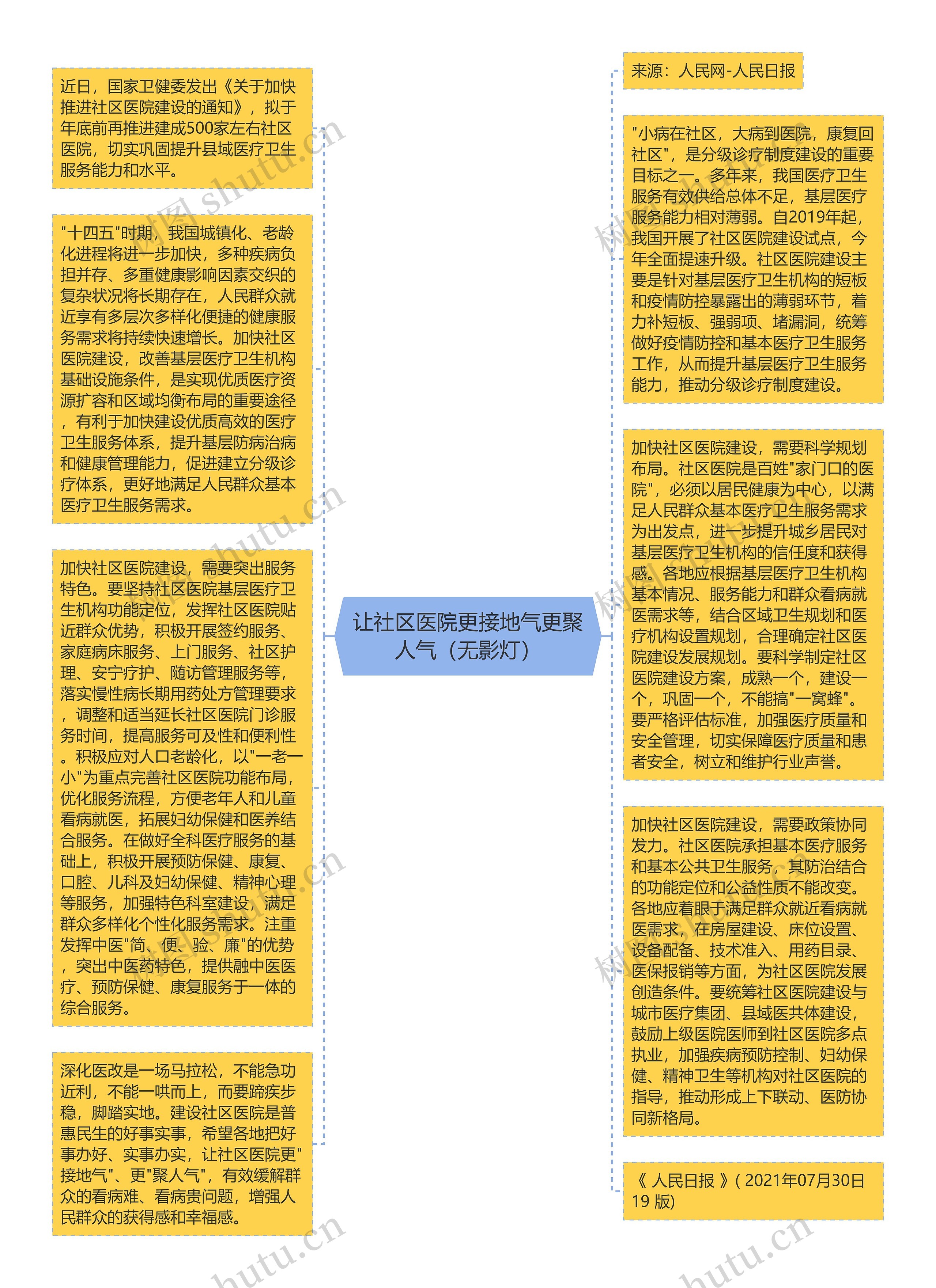 加快社区医院建设,需要政策协同发力。社区医院承担基本医疗服务和基本公共卫生服务,其防治结合的功能定位和公益性质不能改变。各地应着眼于满足群众就近看病就医需求,在房屋建设、床位设置、设备配备、技术准入、用药目录、医保报销等方面,为社区医院发展创造条件。要统筹社区医院建设与城市医疗集团、县域医共体建设,鼓励上级医院医师到社区医院多点执业,加强疾病预防控制、妇幼保健、精神卫生等机构对社区医院的指导,推动形成上下联动、医防协同新格局。