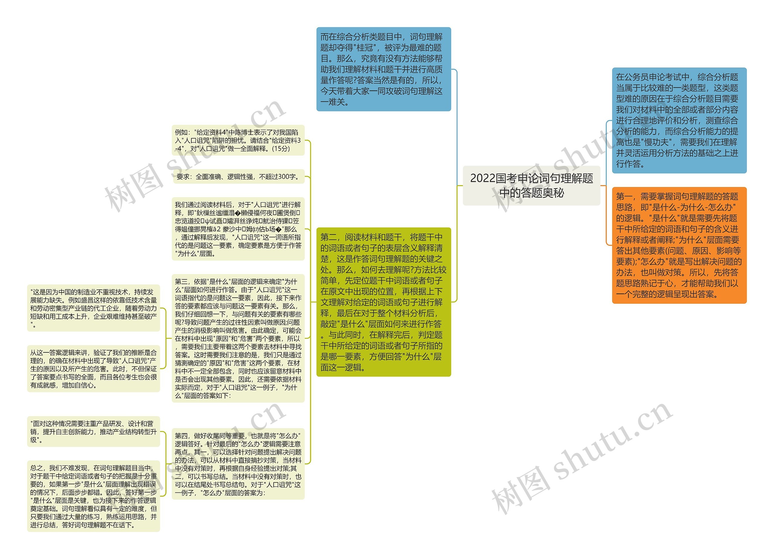 第三,依据"是什么"层面的逻辑来确定"为什么"层面如何进行作答。由于"人口诅咒"这一词语指代的是问题这一要素,因此,接下来作答的要素都应该与问题这一要素有关。那么,我们仔细回想一下,与问题有关的要素有哪些呢?导致问题产生的过往性因素叫做原因;问题产生的消极影响叫做危害。由此确定,可能会在材料中出现"原因"和"危害"两个要素,所以,需要我们主要带着这两个要素去材料中寻找答案。这时需要我们注意的是,我们只是通过猜测确定的"原因"和"危害"这两个要素,在材料中不一定全部包含,同时也应该留意材料中是否会出现其他要素。因此,还需要依据材料实际而定,对于"人口诅咒"这一例子,"为什么"层面的答案如下: