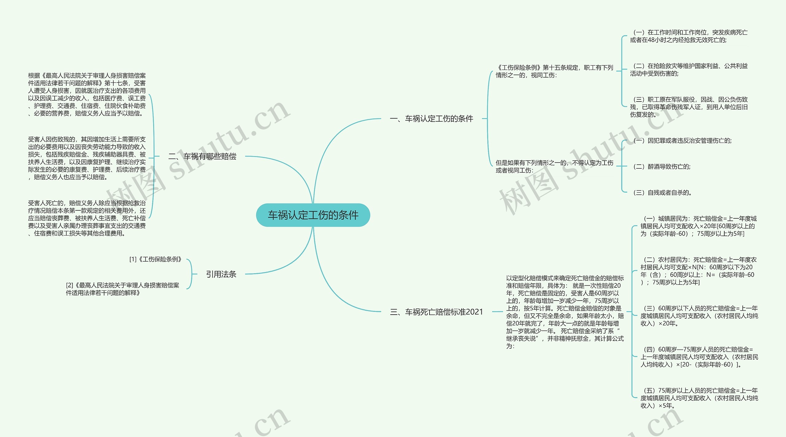 树图思维导图提供《车祸认定工伤的条件》在线思维导图免费制作,点击“编辑”按钮,可对《车祸认定工伤的条件》进行在线思维导图编辑,本思维导图属于思维导图模板主题,文件编号是:637a1a2f67013bcaacff8a9553b04638