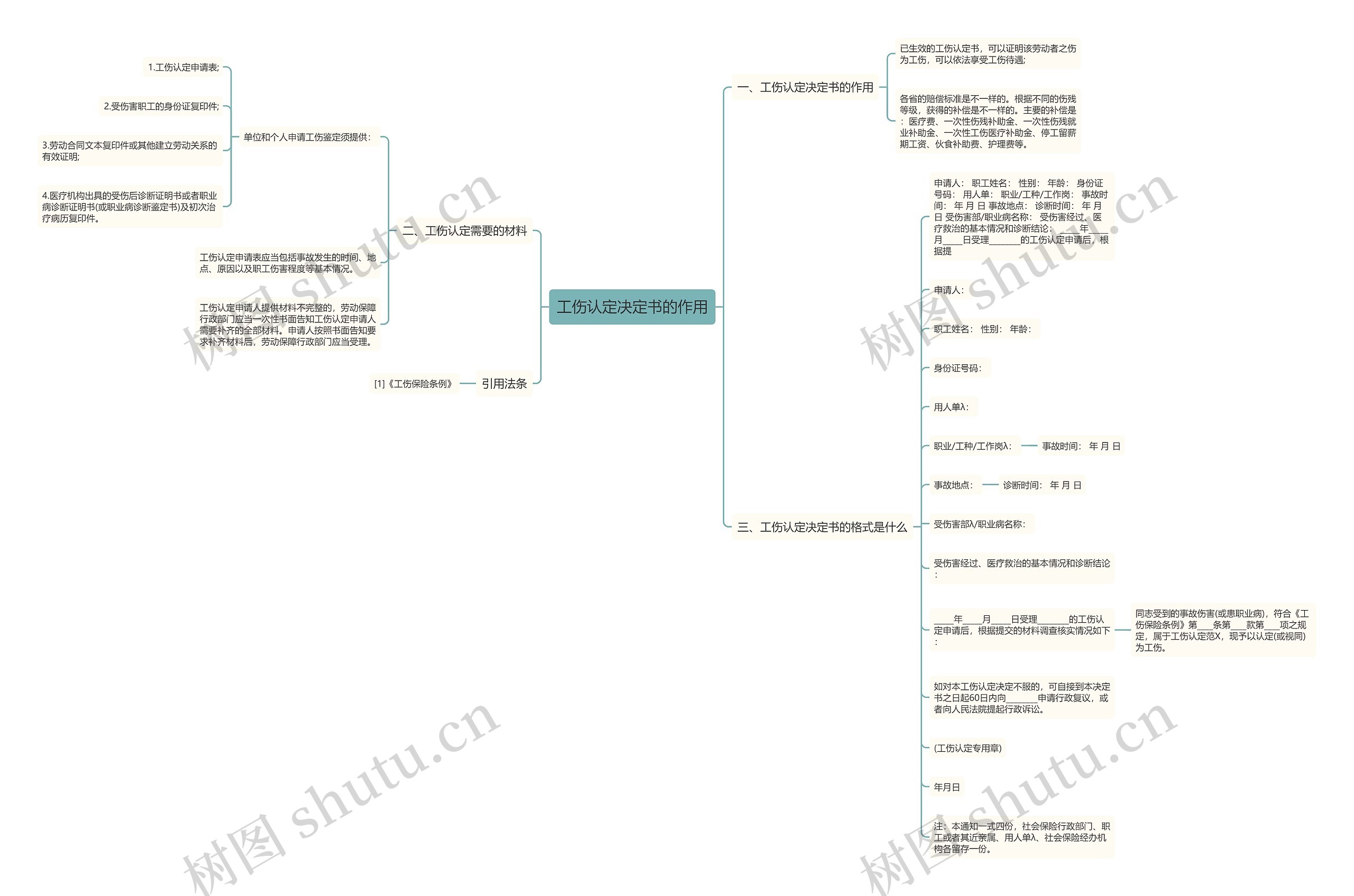 树图思维导图提供《工伤认定决定书的作用》在线思维导图免费制作,点击“编辑”按钮,可对《工伤认定决定书的作用》进行在线思维导图编辑,本思维导图属于思维导图模板主题,文件编号是:f3cbd0ed6a6a672021027c2d92e9491a