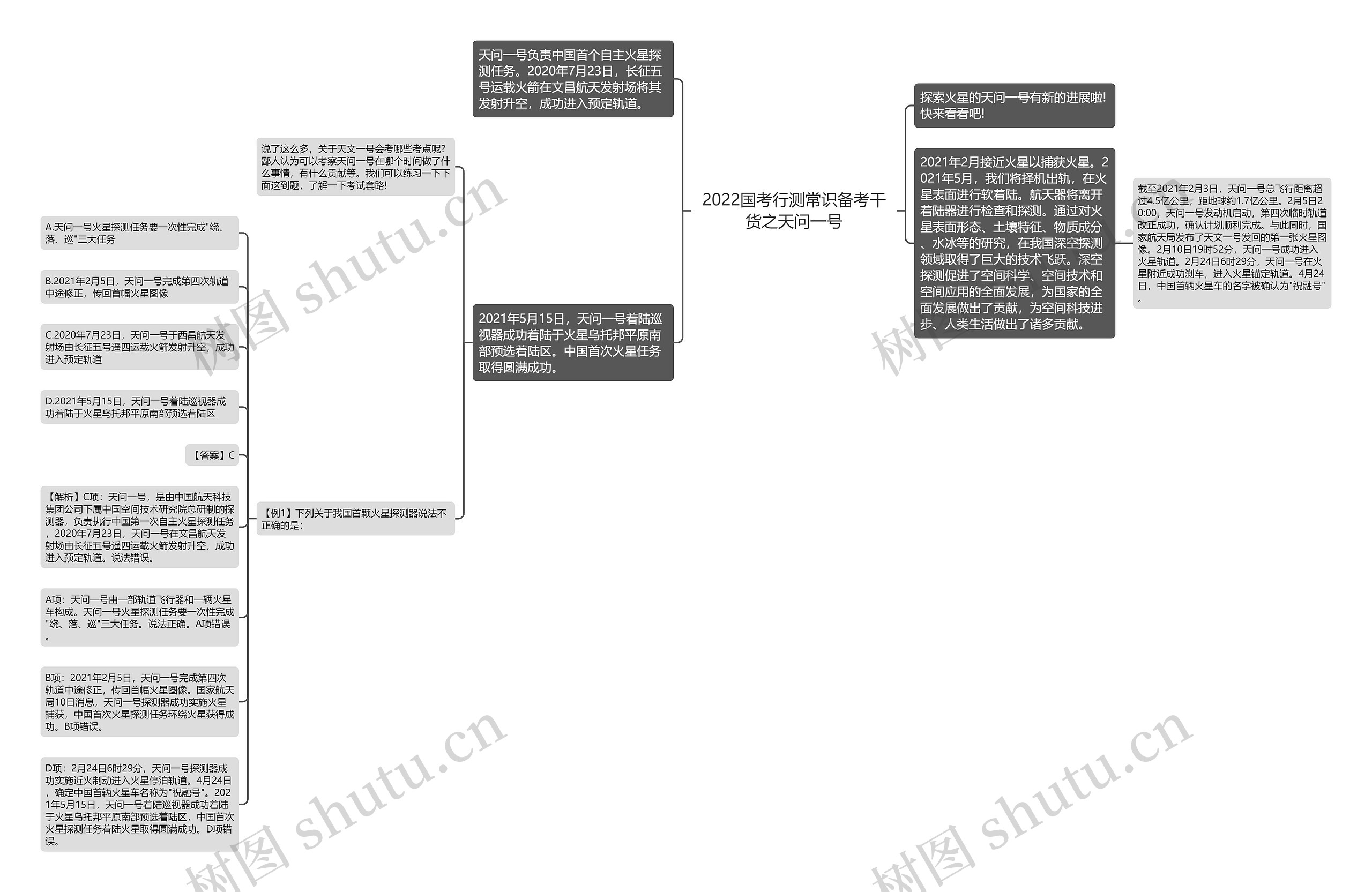 【解析】C项:天问一号,是由中国航天科技集团公司下属中国空间技术研究院总研制的探测器,负责执行中国第一次自主火星探测任务,2020年7月23日,天问一号在文昌航天发射场由长征五号遥四运载火箭发射升空,成功进入预定轨道。说法错误。