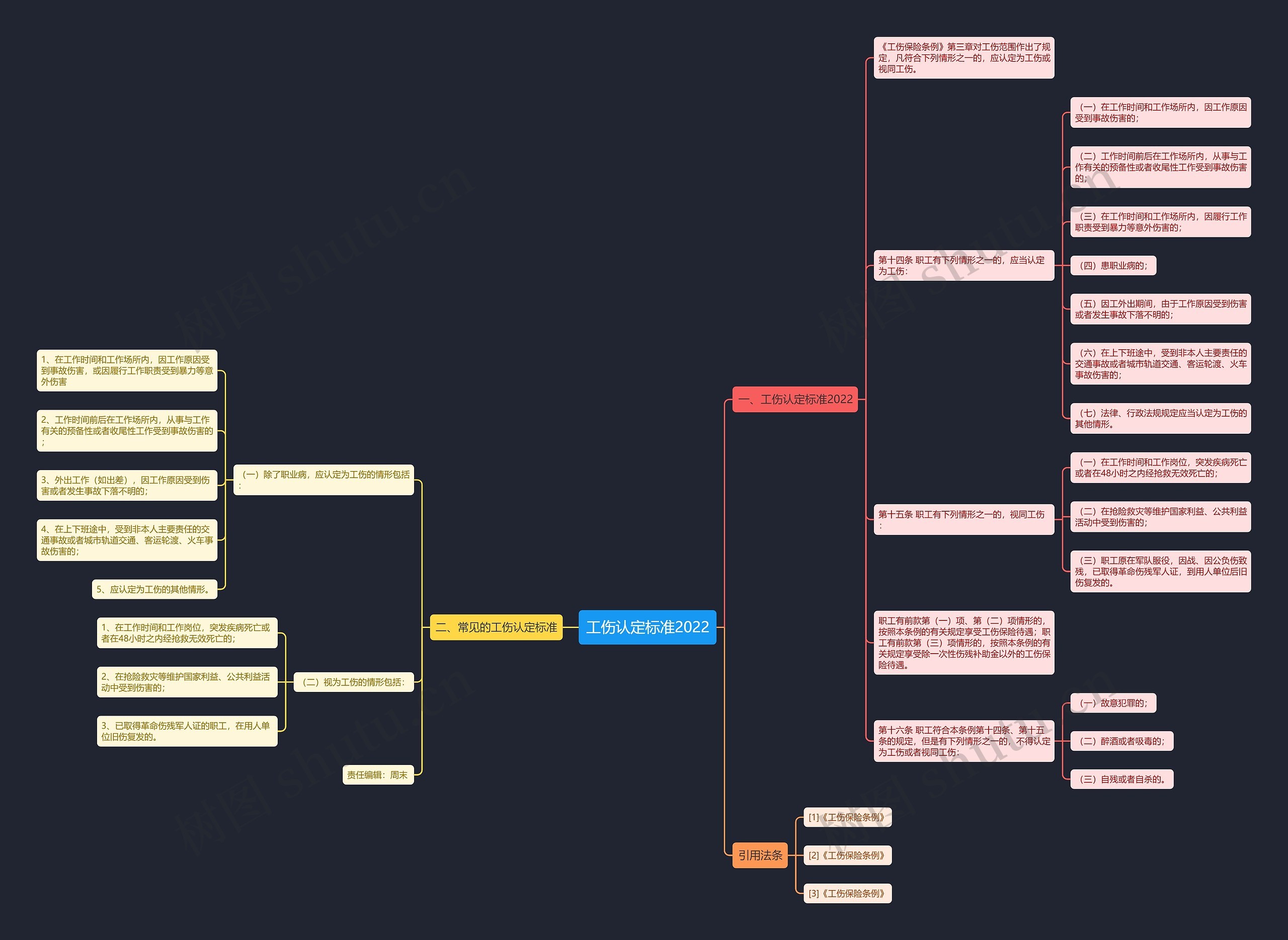 树图思维导图提供《工伤认定标准2022》在线思维导图免费制作,点击“编辑”按钮,可对《工伤认定标准2022》进行在线思维导图编辑,本思维导图属于思维导图模板主题,文件编号是:2e04dd28b76b47ef052066cb410da21b