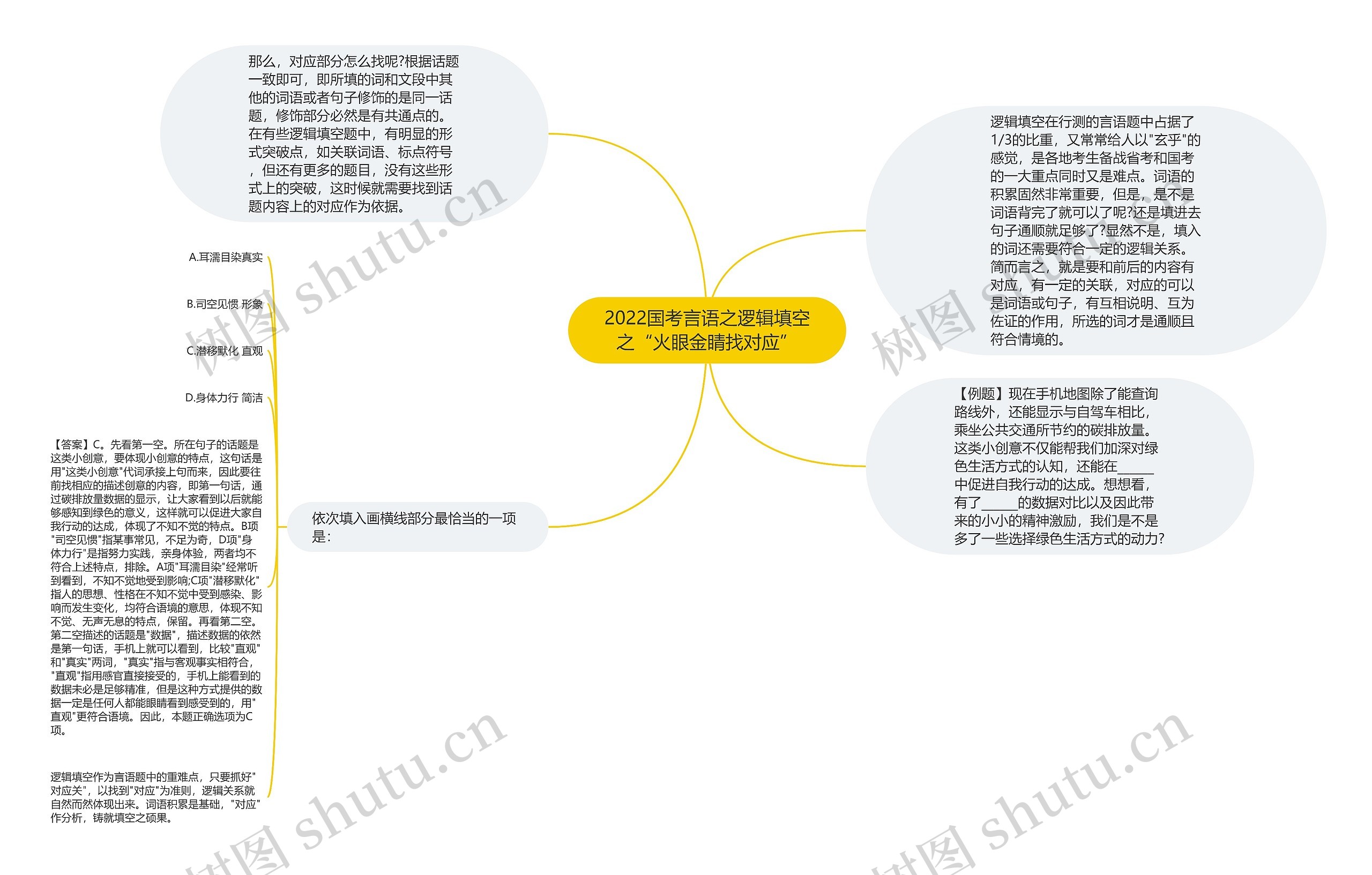 树图思维导图提供《2022国考言语之逻辑填空之“火眼金睛找对应”》在线思维导图免费制作,点击“编辑”按钮,可对《2022国考言语之逻辑填空之“火眼金睛找对应”》进行在线思维导图编辑,本思维导图属于思维导图模板主题,文件编号是:5847a09baba9016889bf2512fe2dabef