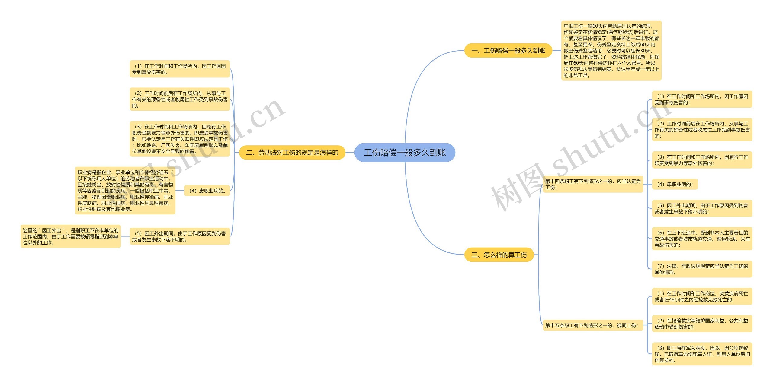 在工作的途中,遇到大大小小的工伤也是很常见的,但是关于赔偿的事宜很多人都不清楚。那么,工伤赔偿一般多久到账?劳动法对工伤的规定是怎样的?怎么样的算工伤?针对这几个问题树图网小编为您详细介绍,希望对你有所帮助。