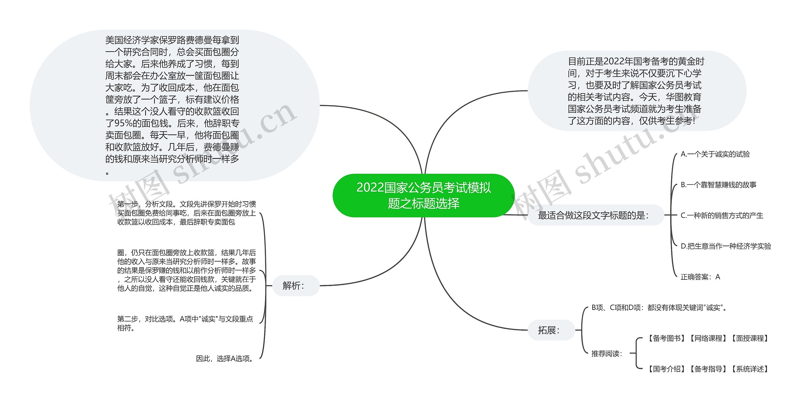树图思维导图提供《2022国家公务员考试模拟题之标题选择》在线思维导图免费制作,点击“编辑”按钮,可对《2022国家公务员考试模拟题之标题选择》进行在线思维导图编辑,本思维导图属于思维导图模板主题,文件编号是:5705ad996198fb60651f3822d3516052