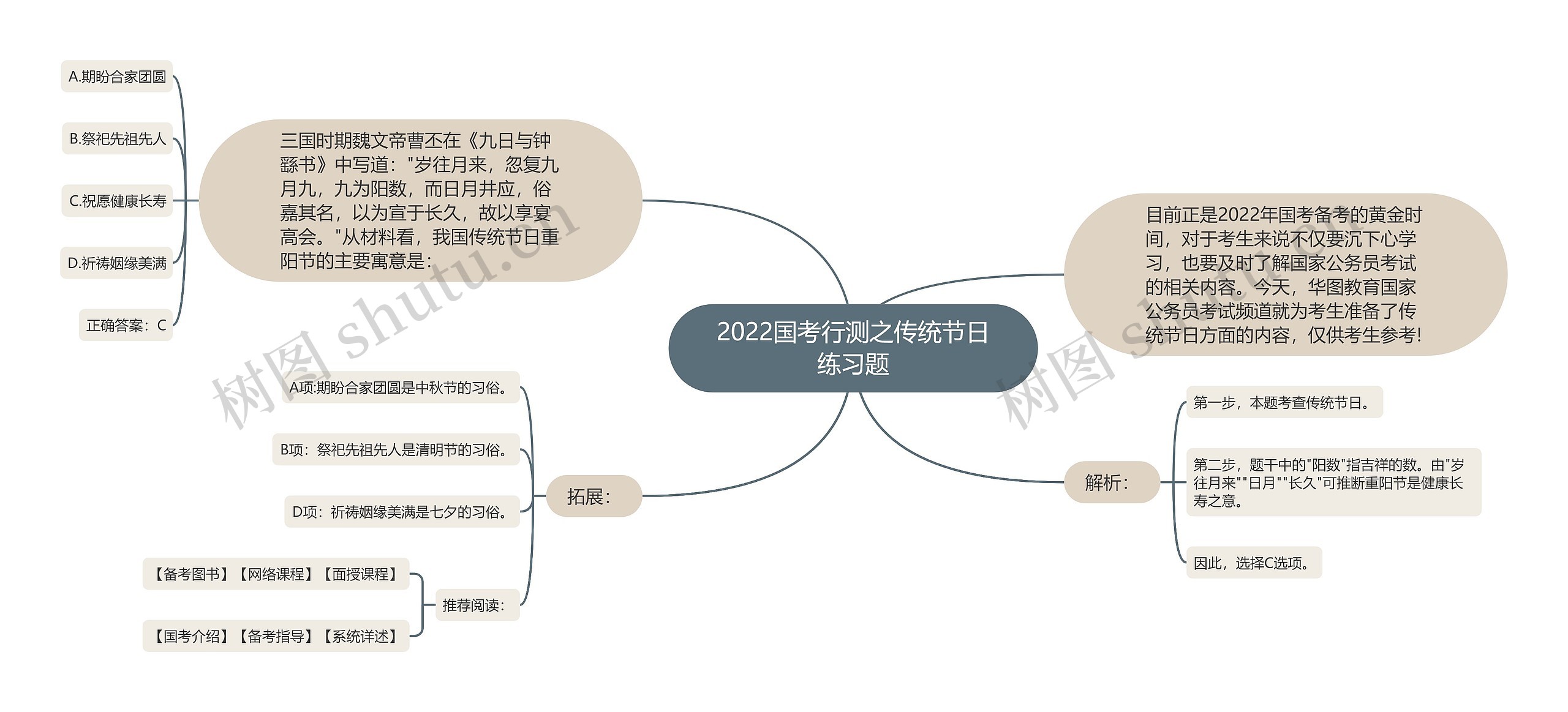 树图思维导图提供《2022国考行测之传统节日练习题》在线思维导图免费制作,点击“编辑”按钮,可对《2022国考行测之传统节日练习题》进行在线思维导图编辑,本思维导图属于思维导图模板主题,文件编号是:fceb0c2749eb96b7fe343cb5eb3d10b9