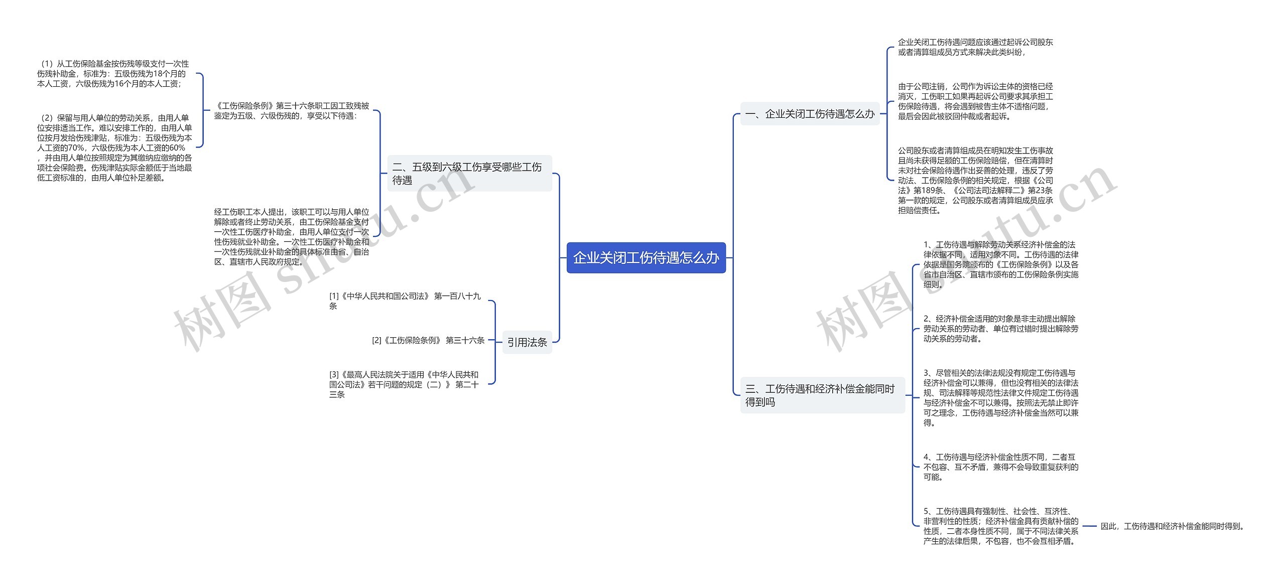 树图思维导图提供《企业关闭工伤待遇怎么办》在线思维导图免费制作,点击“编辑”按钮,可对《企业关闭工伤待遇怎么办》进行在线思维导图编辑,本思维导图属于思维导图模板主题,文件编号是:730231886160dcea2c757f854659b08e
