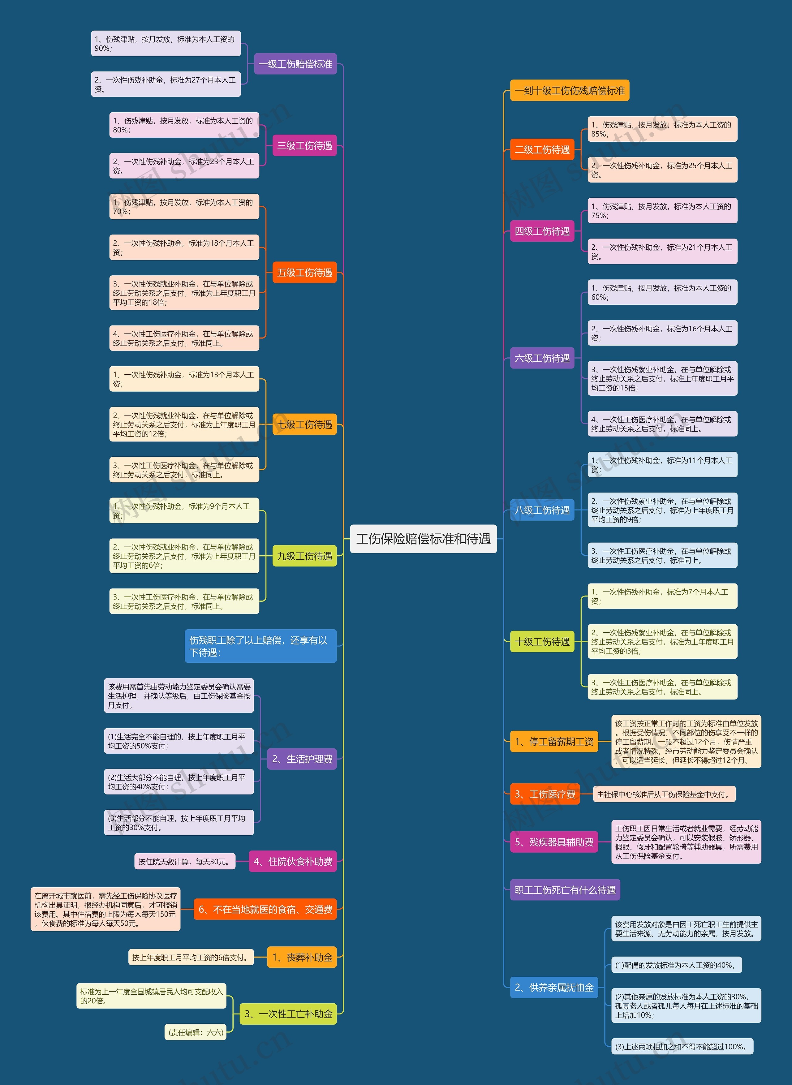 树图思维导图提供《工伤保险赔偿标准和待遇》在线思维导图免费制作,点击“编辑”按钮,可对《工伤保险赔偿标准和待遇》进行在线思维导图编辑,本思维导图属于思维导图模板主题,文件编号是:dda6bbfdffe38f1b0624e8d76ea93c5c