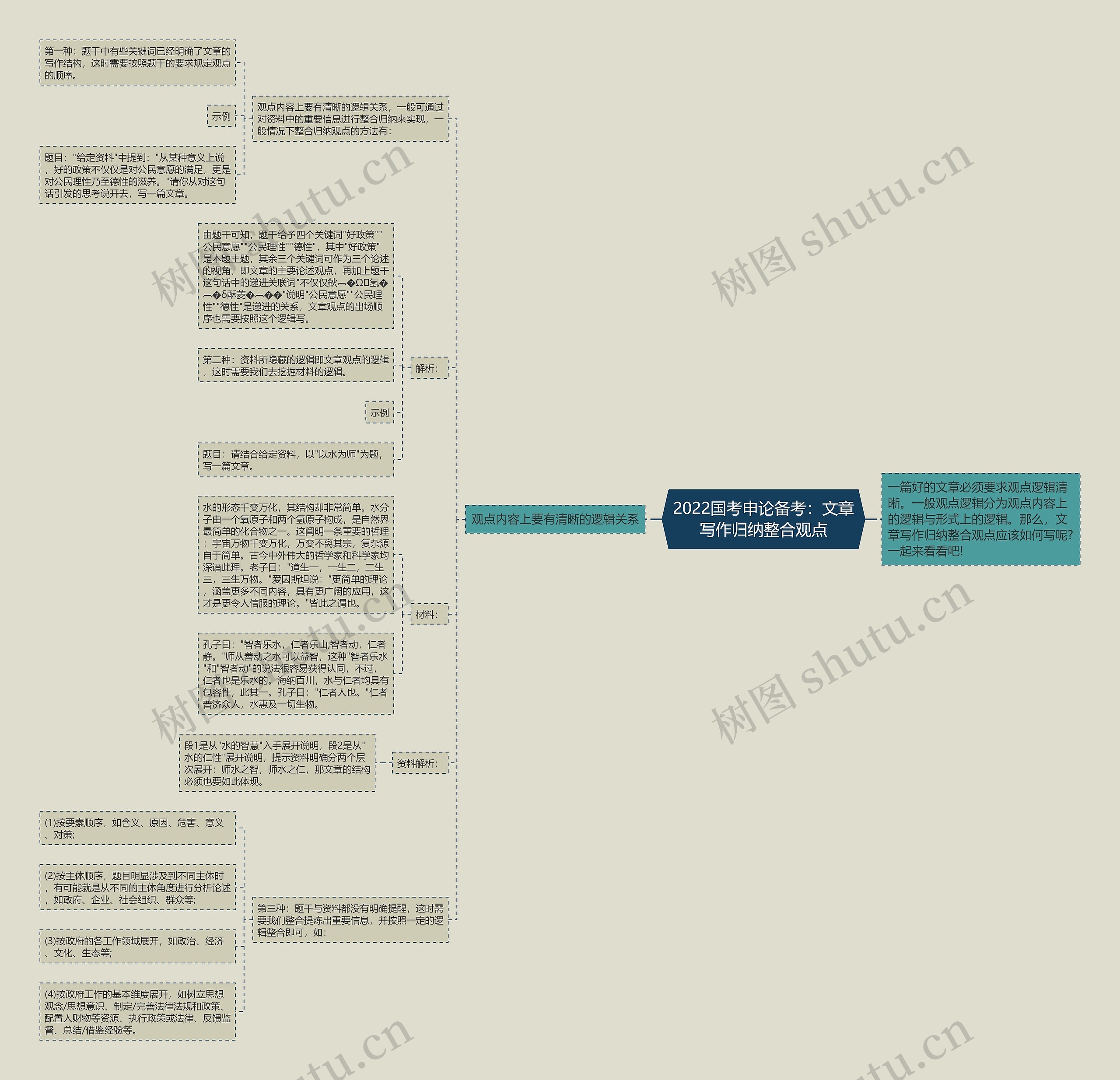 树图思维导图提供《2022国考申论备考:文章写作归纳整合观点》在线思维导图免费制作,点击“编辑”按钮,可对《2022国考申论备考:文章写作归纳整合观点》进行在线思维导图编辑,本思维导图属于思维导图模板主题,文件编号是:8a2e2ea692e71782e945f88cd64f15e2