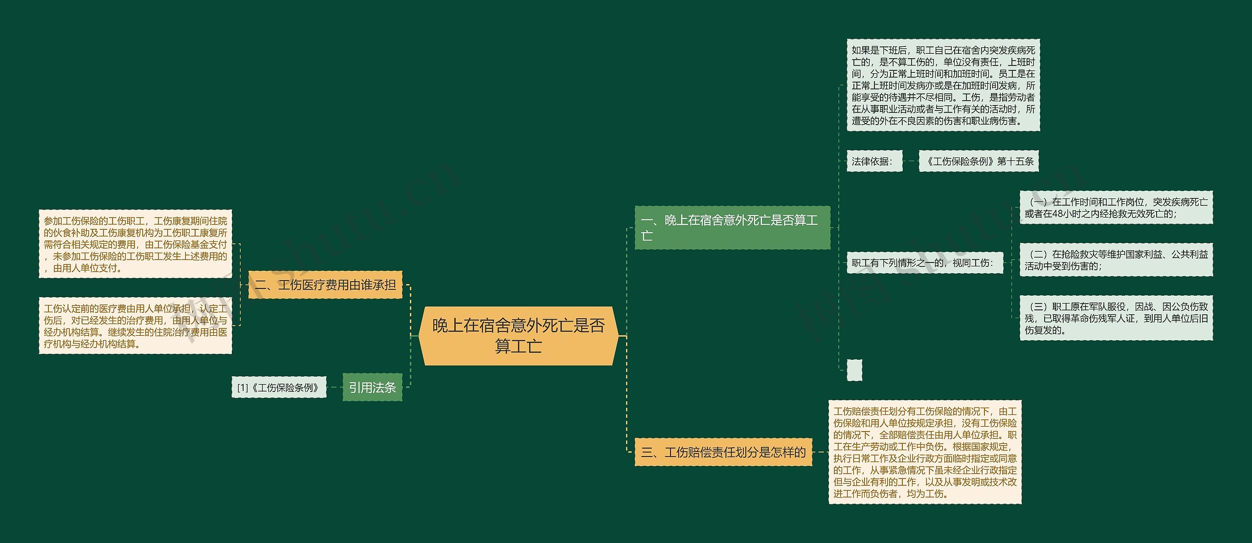 树图思维导图提供《晚上在宿舍意外死亡是否算工亡》在线思维导图免费制作,点击“编辑”按钮,可对《晚上在宿舍意外死亡是否算工亡》进行在线思维导图编辑,本思维导图属于思维导图模板主题,文件编号是:f0d65565be76deebc410f39acb13cbcf