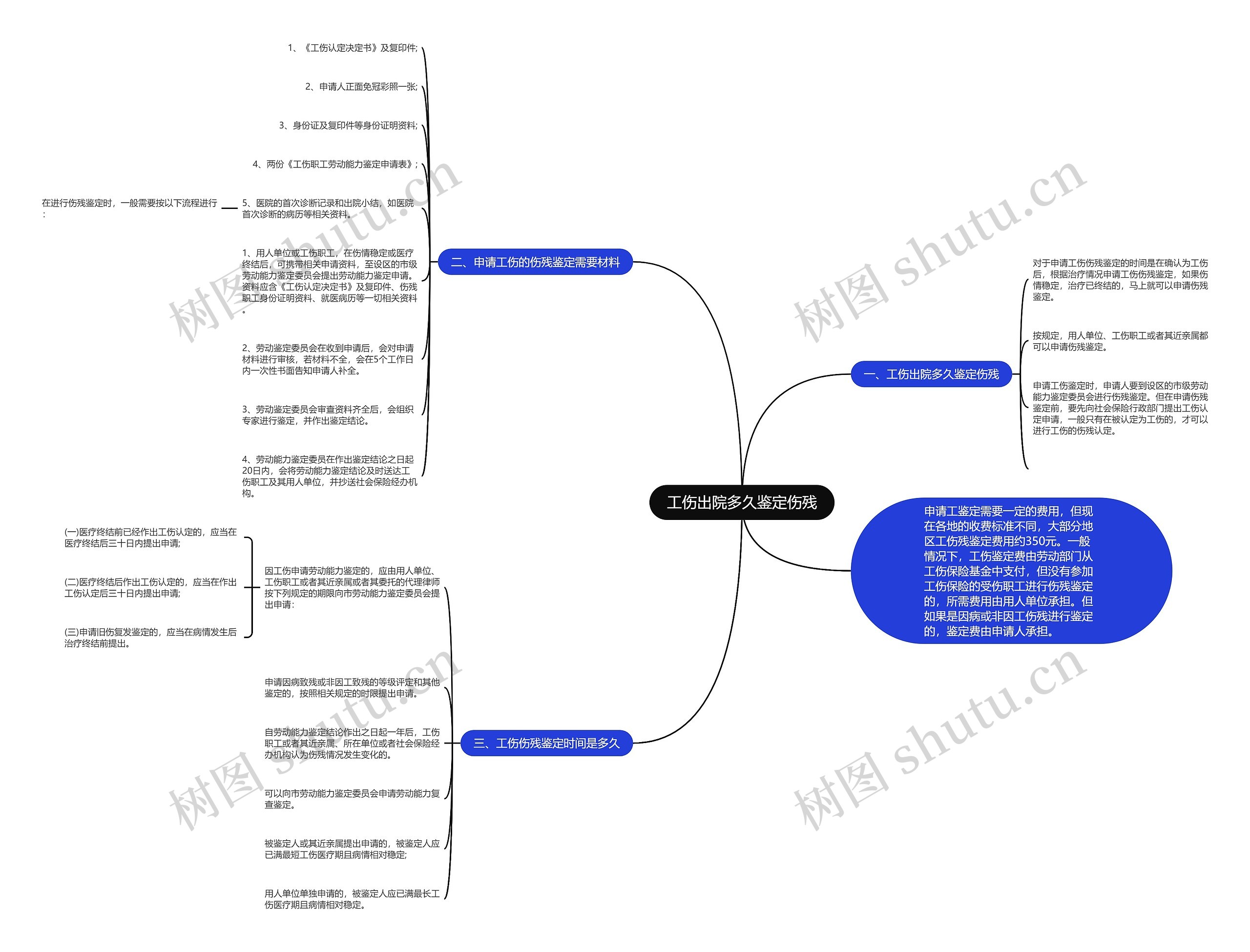 树图思维导图提供《工伤出院多久鉴定伤残》在线思维导图免费制作,点击“编辑”按钮,可对《工伤出院多久鉴定伤残》进行在线思维导图编辑,本思维导图属于思维导图模板主题,文件编号是:a8c9b4edb0ff58c8811b8c913d37874d