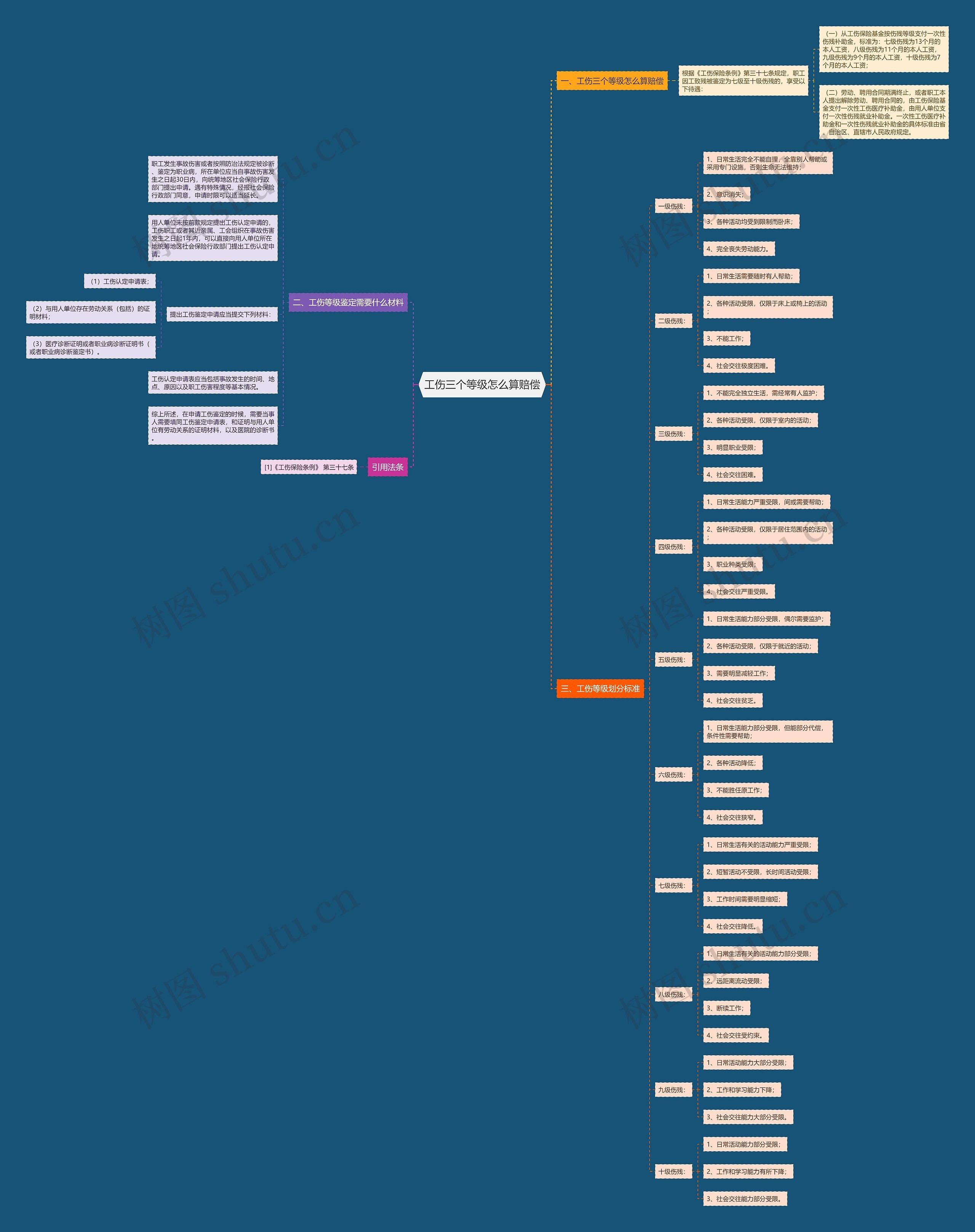 树图思维导图提供《工伤三个等级怎么算赔偿》在线思维导图免费制作,点击“编辑”按钮,可对《工伤三个等级怎么算赔偿》进行在线思维导图编辑,本思维导图属于思维导图模板主题,文件编号是:400ace689c6ba035e090ee1a3c1e05aa