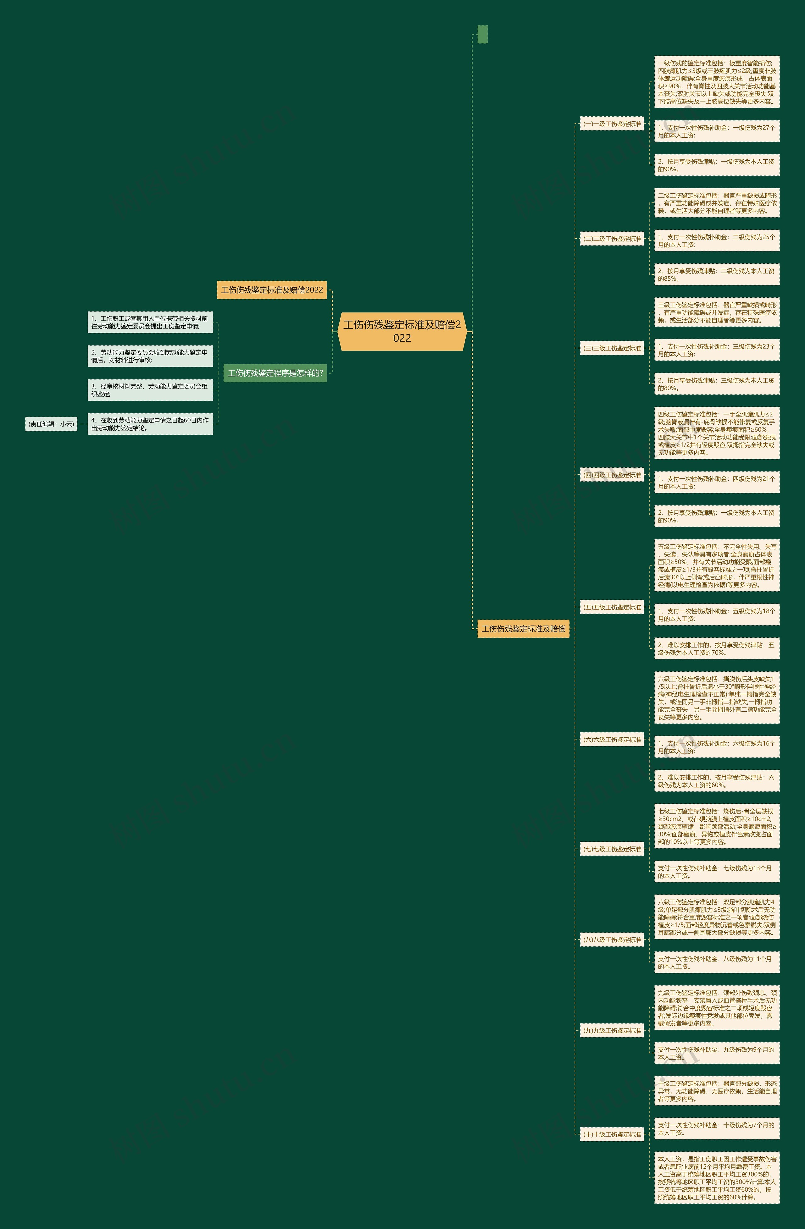 树图思维导图提供《工伤伤残鉴定标准及赔偿2022》在线思维导图免费制作,点击“编辑”按钮,可对《工伤伤残鉴定标准及赔偿2022》进行在线思维导图编辑,本思维导图属于思维导图模板主题,文件编号是:4dd2c86419c573b5961b2faf52d96450