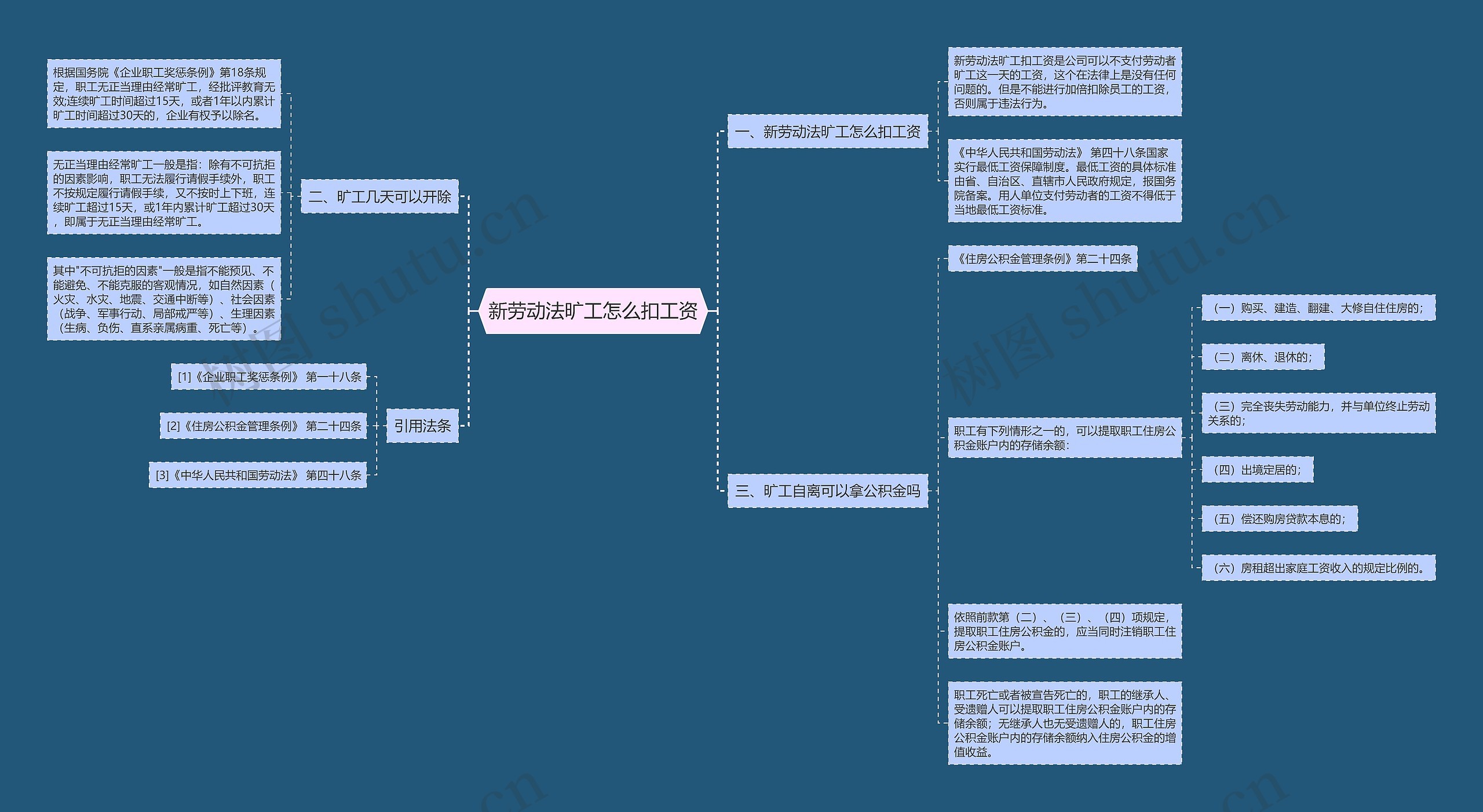 树图思维导图提供《新劳动法旷工怎么扣工资》在线思维导图免费制作,点击“编辑”按钮,可对《新劳动法旷工怎么扣工资》进行在线思维导图编辑,本思维导图属于思维导图模板主题,文件编号是:5856135fc20eb57f9b54aacc93df886a