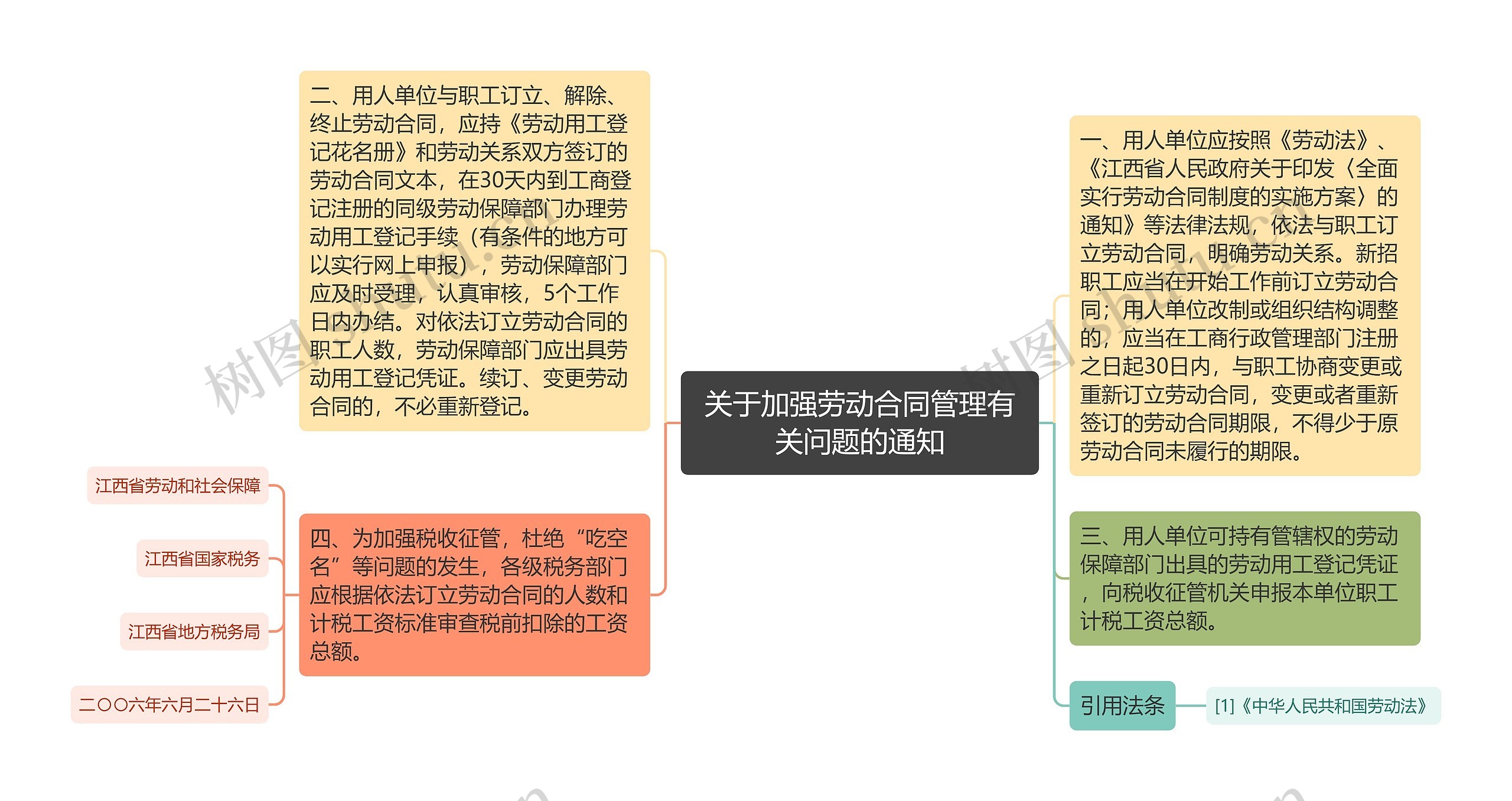 树图思维导图提供《关于加强劳动合同管理有关问题的通知》在线思维导图免费制作,点击“编辑”按钮,可对《关于加强劳动合同管理有关问题的通知》进行在线思维导图编辑,本思维导图属于思维导图模板主题,文件编号是:fd7a5a4ce693317d908fc0675cbd4021
