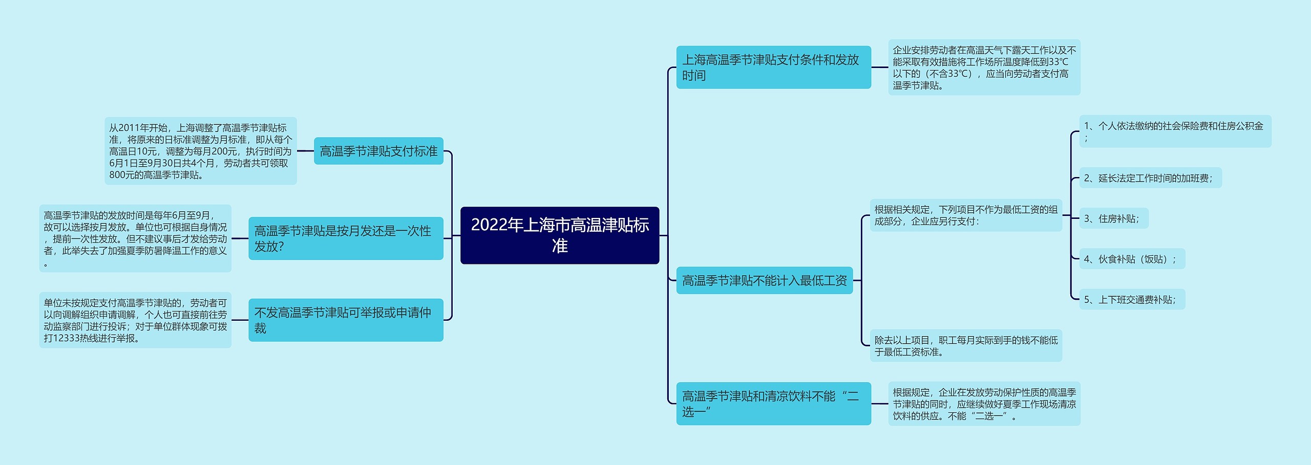 树图思维导图提供《2022年上海市高温津贴标准》在线思维导图免费制作,点击“编辑”按钮,可对《2022年上海市高温津贴标准》进行在线思维导图编辑,本思维导图属于思维导图模板主题,文件编号是:da50c9ab071ccb841ed3523bdd6aab3a
