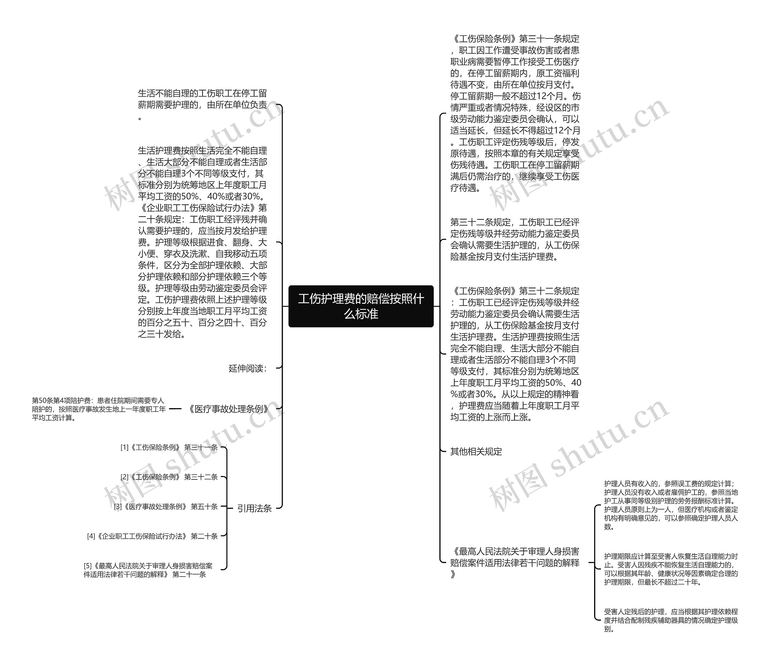 生活护理费按照生活完全不能自理、生活大部分不能自理或者生活部分不能自理3个不同等级支付,其标准分别为统筹地区上年度职工月平均工资的50%、40%或者30%。《企业职工工伤保险试行办法》第二十条规定:工伤职工经评残并确认需要护理的,应当按月发给护理费。护理等级根据进食、翻身、大小便、穿衣及洗漱、自我移动五项条件,区分为全部护理依赖、大部分护理依赖和部分护理依赖三个等级。护理等级由劳动鉴定委员会评定。工伤护理费依照上述护理等级分别按上年度当地职工月平均工资的百分之五十、百分之四十、百分之三十发给。