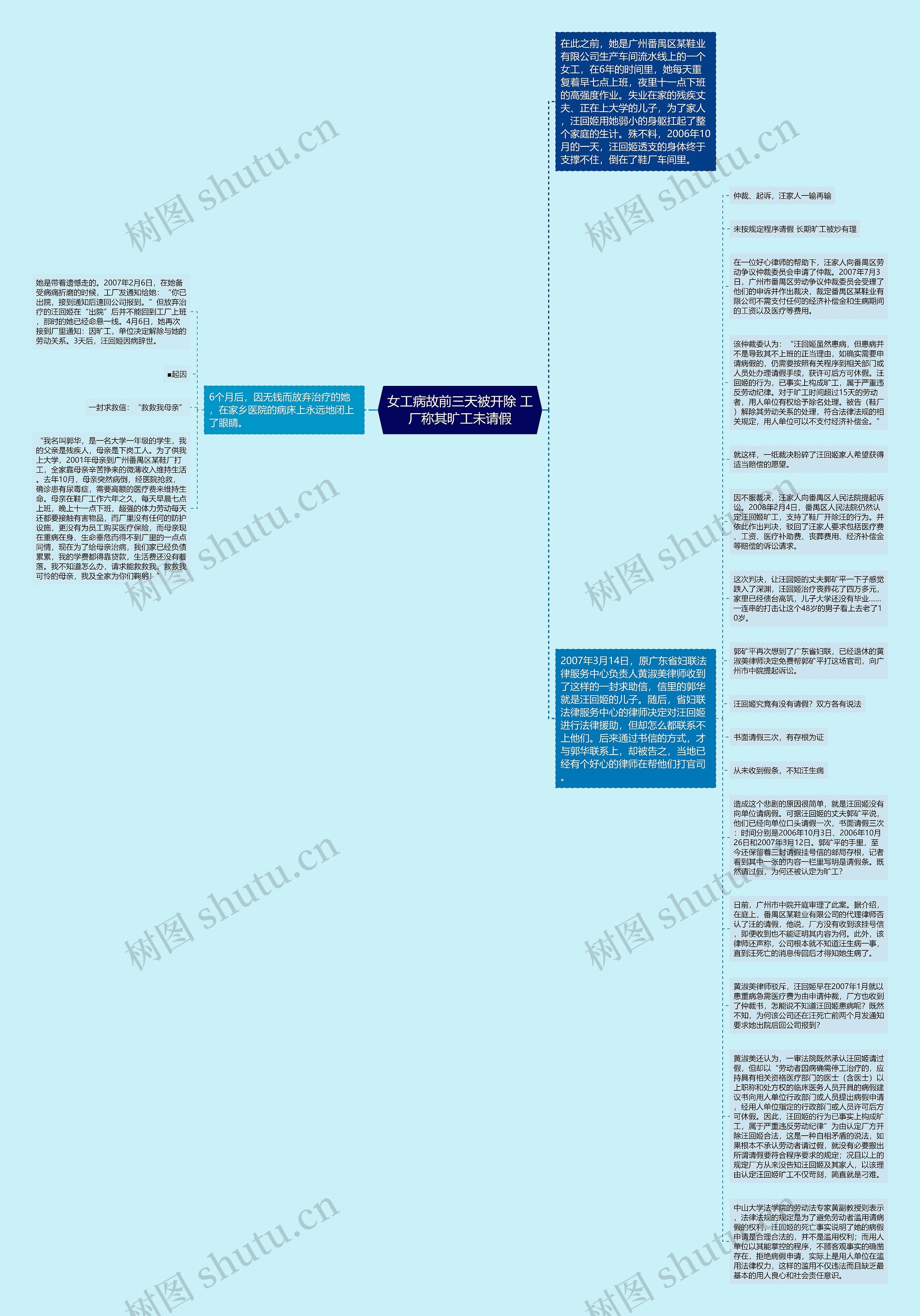 日前,广州市中院开庭审理了此案。据介绍,在庭上,番禺区某鞋业有限公司的代理律师否认了汪的请假,他说,厂方没有收到该挂号信,即便收到也不能证明其内容为何。此外,该律师还声称,公司根本就不知道汪生病一事,直到汪死亡的消息传回后才得知她生病了。