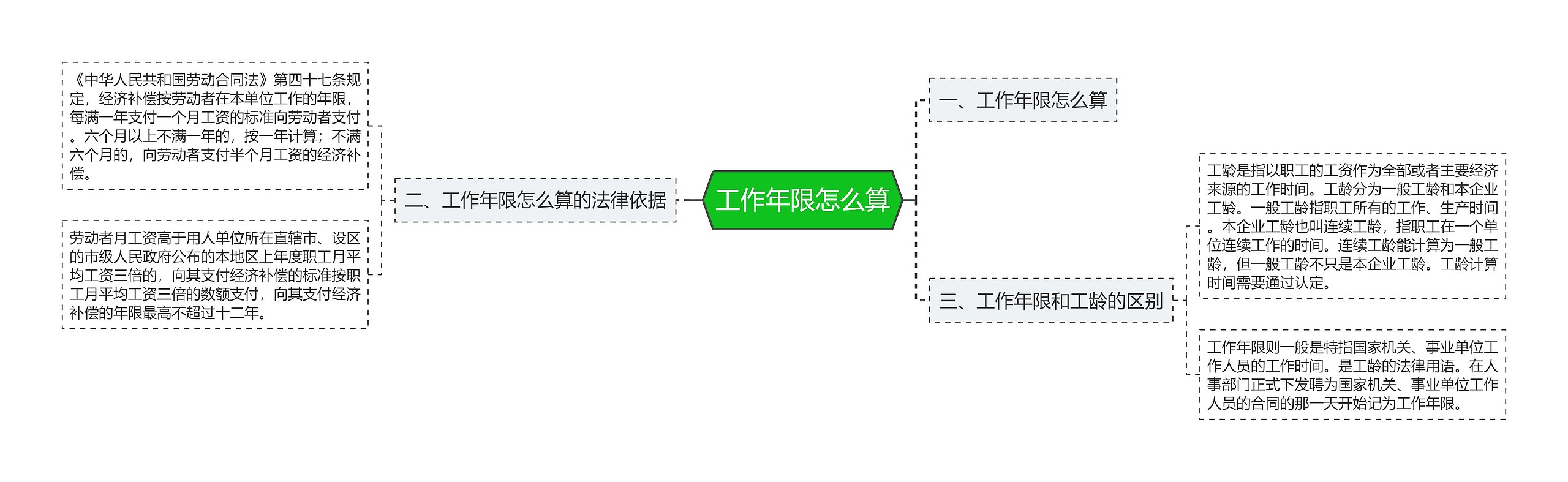 树图思维导图提供《工作年限怎么算》在线思维导图免费制作,点击“编辑”按钮,可对《工作年限怎么算》进行在线思维导图编辑,本思维导图属于思维导图模板主题,文件编号是:780e4073d382b479b96cb1446a19ddef