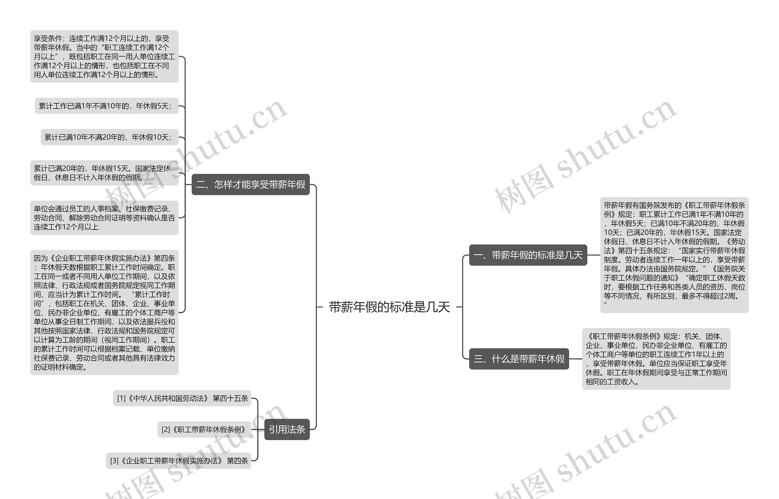 树图思维导图提供《带薪年假的标准是几天》在线思维导图免费制作,点击“编辑”按钮,可对《带薪年假的标准是几天》进行在线思维导图编辑,本思维导图属于思维导图模板主题,文件编号是:ffacce65baa896ff691a37ca70e8a149