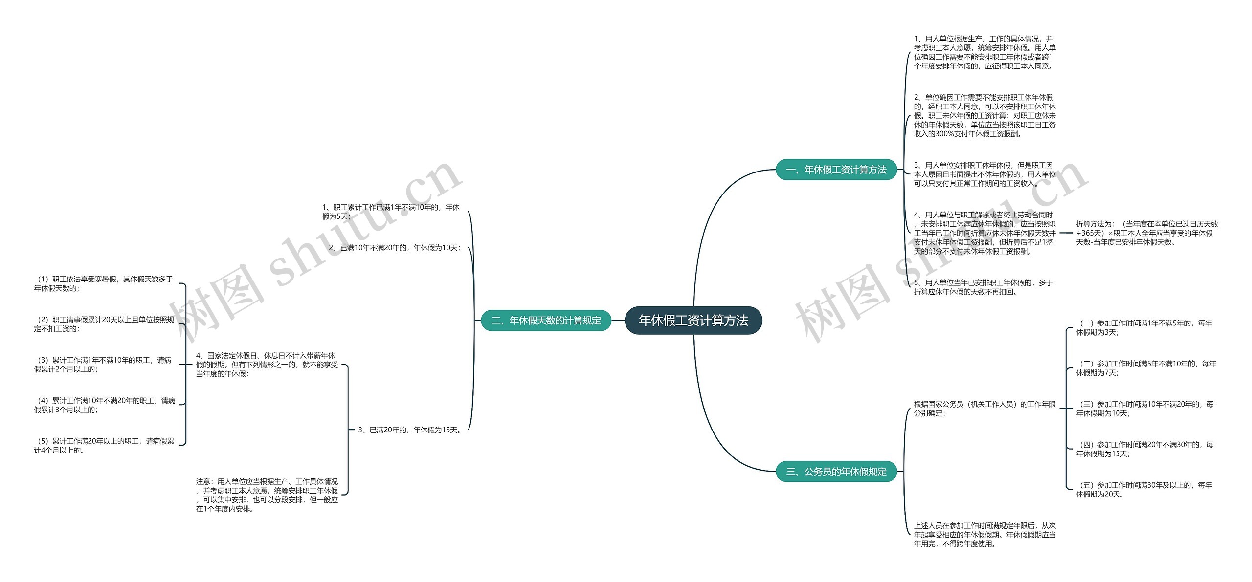 树图思维导图提供《年休假工资计算方法》在线思维导图免费制作,点击“编辑”按钮,可对《年休假工资计算方法》进行在线思维导图编辑,本思维导图属于思维导图模板主题,文件编号是:3cb4a6adeeb6b62bd815162b88fda3d4