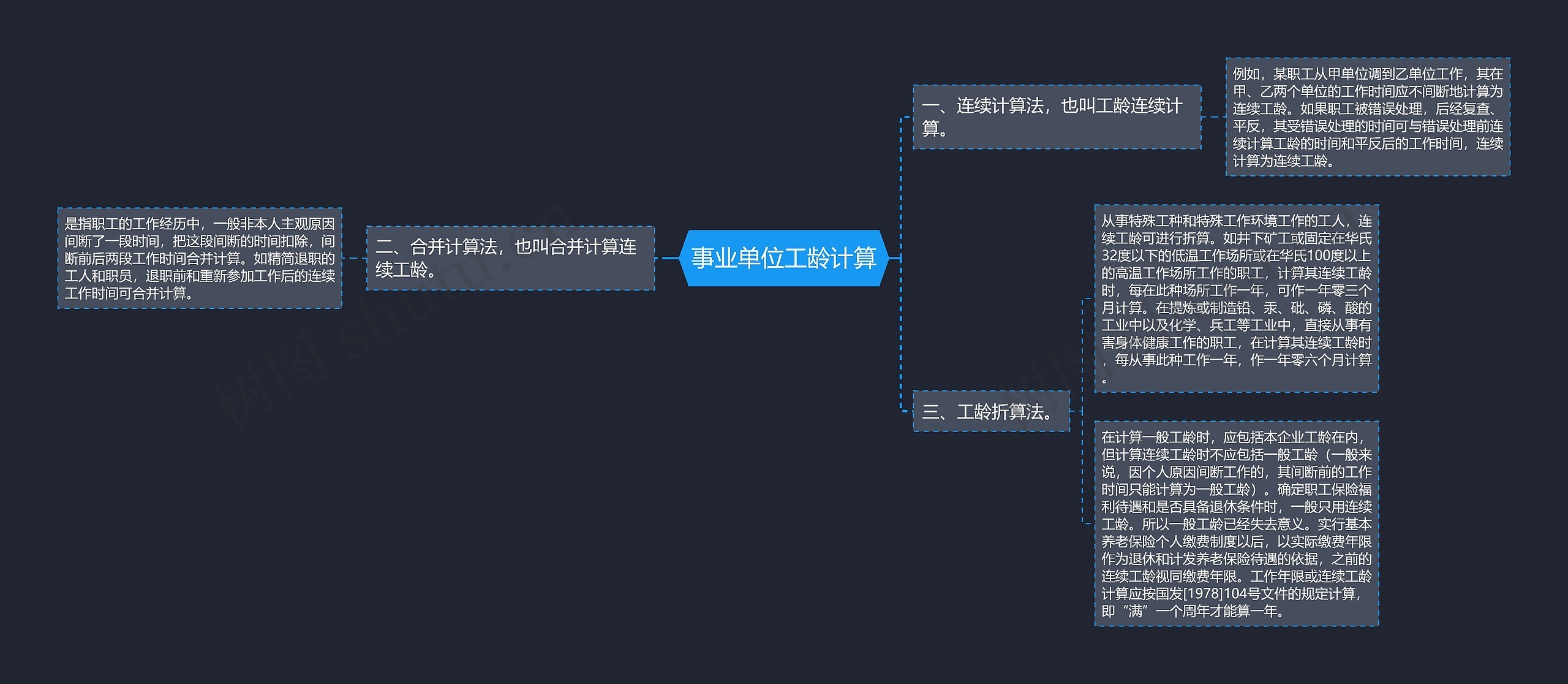树图思维导图提供《事业单位工龄计算》在线思维导图免费制作,点击“编辑”按钮,可对《事业单位工龄计算》进行在线思维导图编辑,本思维导图属于思维导图模板主题,文件编号是:60f93705d1ba7c750301320a1be8844c