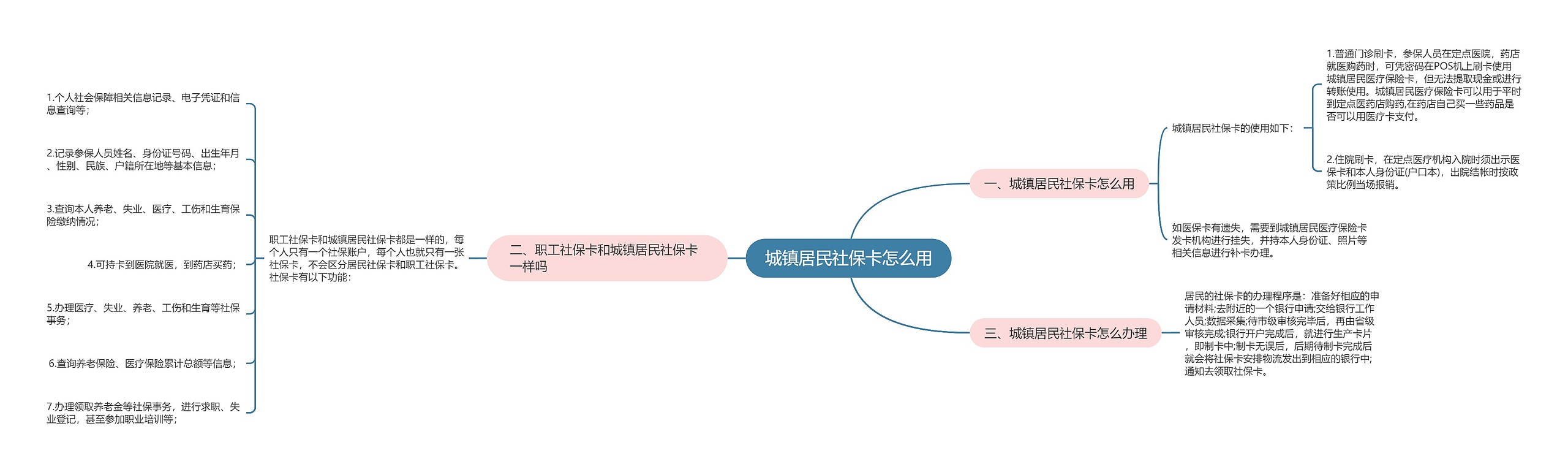 树图思维导图提供《城镇居民社保卡怎么用》在线思维导图免费制作,点击“编辑”按钮,可对《城镇居民社保卡怎么用》进行在线思维导图编辑,本思维导图属于思维导图模板主题,文件编号是:858bef8f56e0fad582eae80d3e099b44