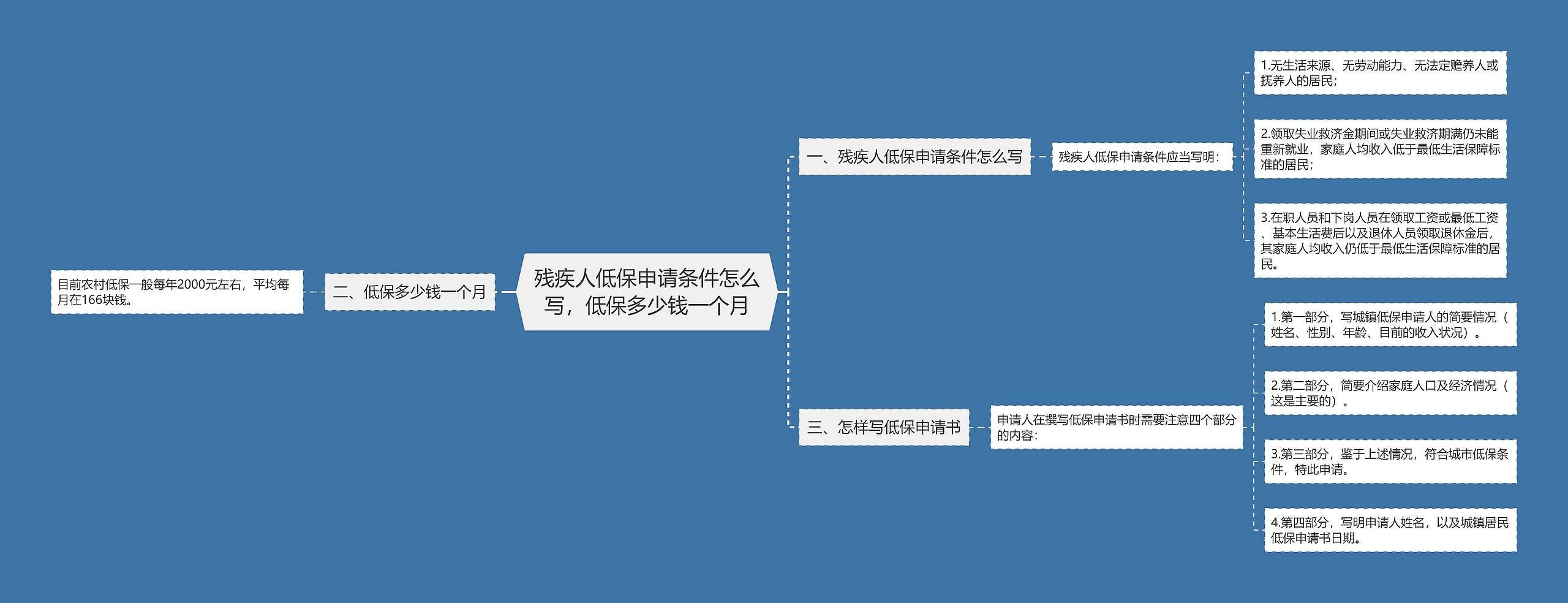 树图思维导图提供《残疾人低保申请条件怎么写,低保多少钱一个月》在线思维导图免费制作,点击“编辑”按钮,可对《残疾人低保申请条件怎么写,低保多少钱一个月》进行在线思维导图编辑,本思维导图属于思维导图模板主题,文件编号是:2c2adb2f4d49616001ad58dafc864ba1