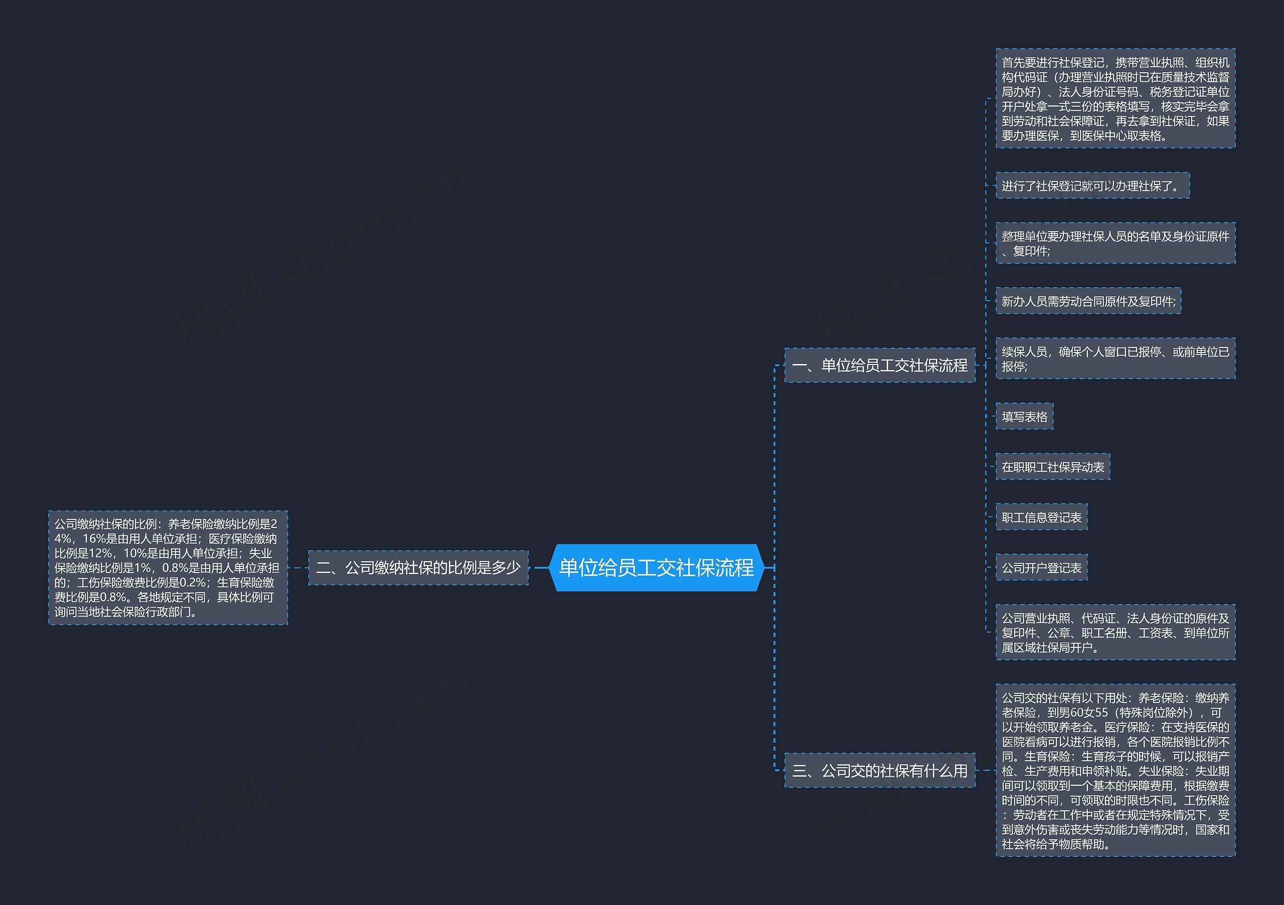 树图思维导图提供《单位给员工交社保流程》在线思维导图免费制作,点击“编辑”按钮,可对《单位给员工交社保流程》进行在线思维导图编辑,本思维导图属于思维导图模板主题,文件编号是:04d9b97fdb8f61da9663ebe17d968bad
