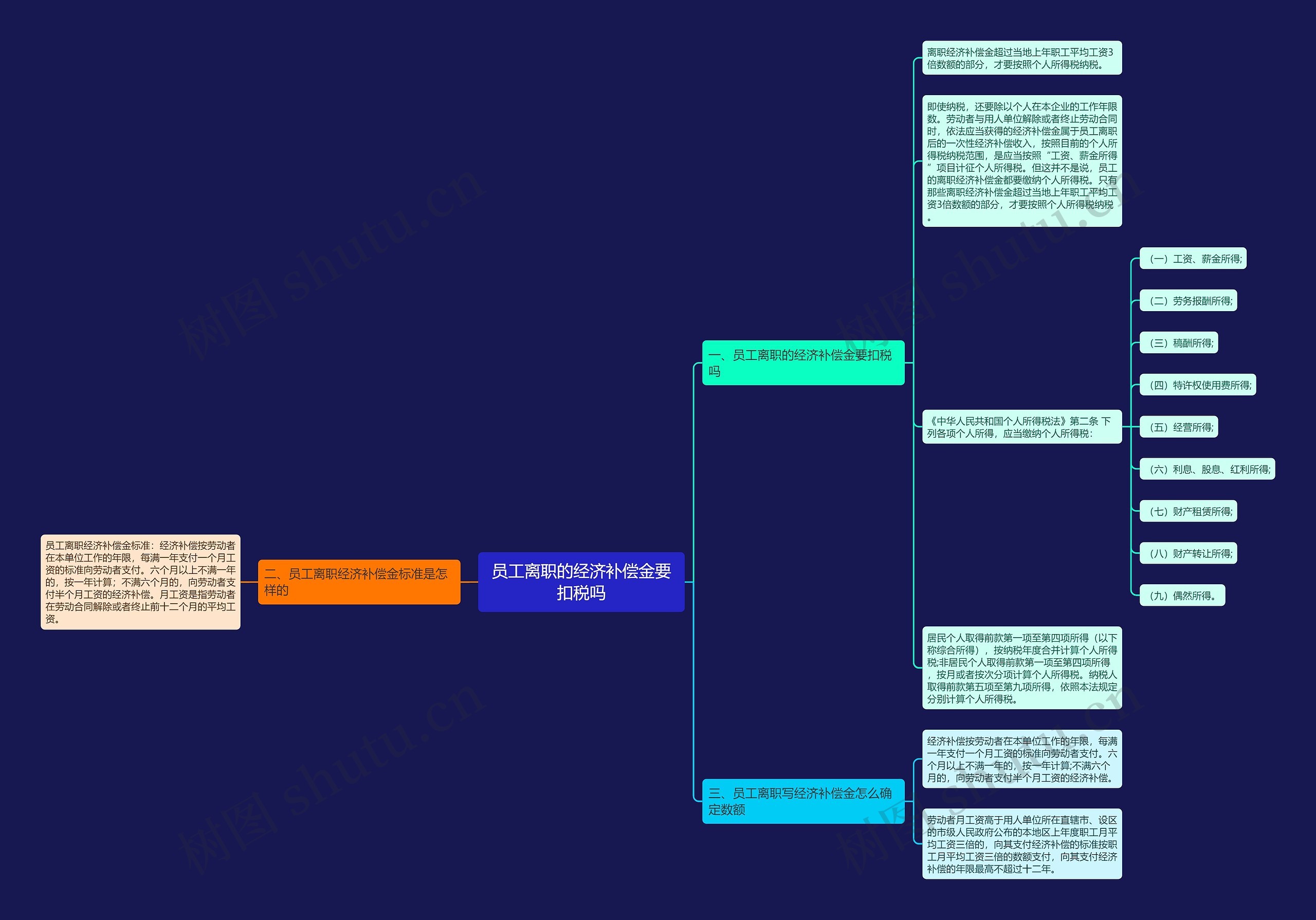 树图思维导图提供《员工离职的经济补偿金要扣税吗》在线思维导图免费制作,点击“编辑”按钮,可对《员工离职的经济补偿金要扣税吗》进行在线思维导图编辑,本思维导图属于思维导图模板主题,文件编号是:4db416cd0a483ae9cefa8fd75ae11ae5