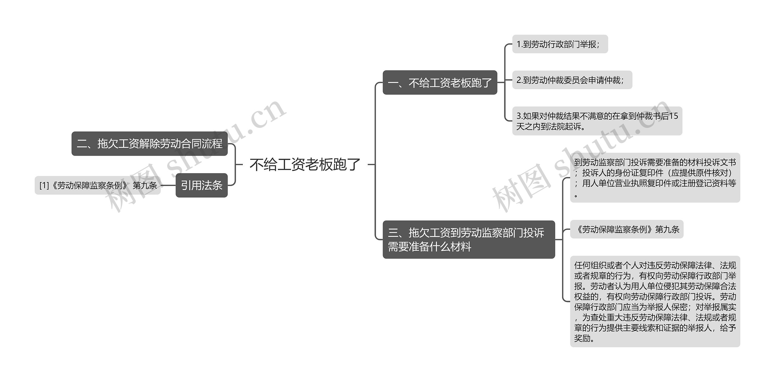 树图思维导图提供《不给工资老板跑了》在线思维导图免费制作,点击“编辑”按钮,可对《不给工资老板跑了》进行在线思维导图编辑,本思维导图属于思维导图模板主题,文件编号是:adcd5524cf987fb5277a705baaa0995b