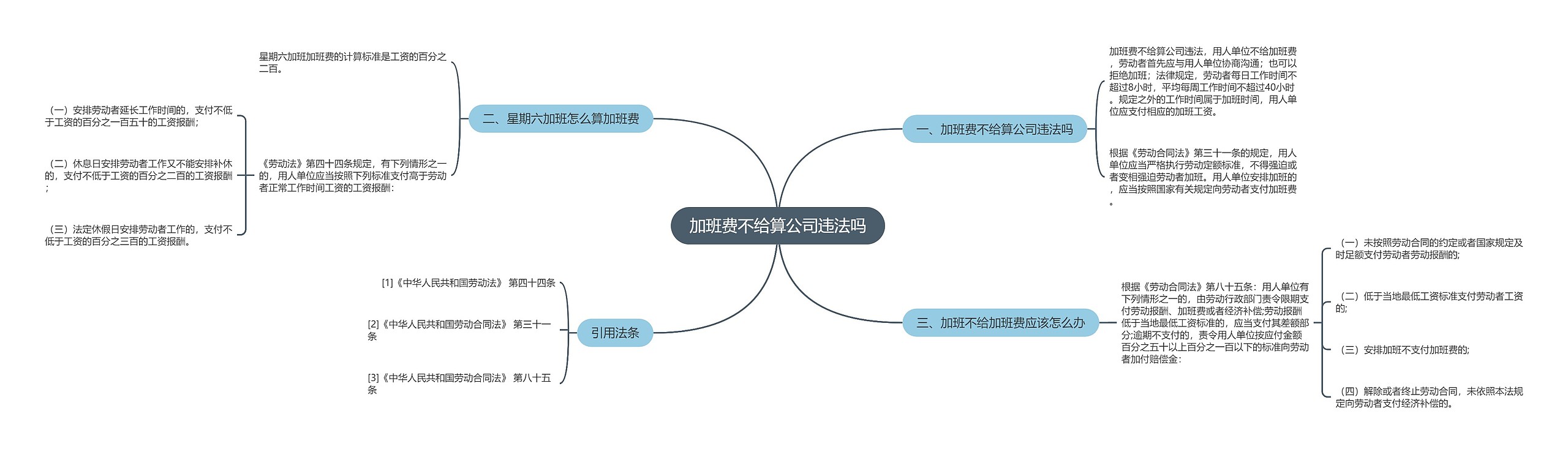 树图思维导图提供《加班费不给算公司违法吗》在线思维导图免费制作,点击“编辑”按钮,可对《加班费不给算公司违法吗》进行在线思维导图编辑,本思维导图属于思维导图模板主题,文件编号是:c058f578c6b8423eeb04c94b33c5eb6f