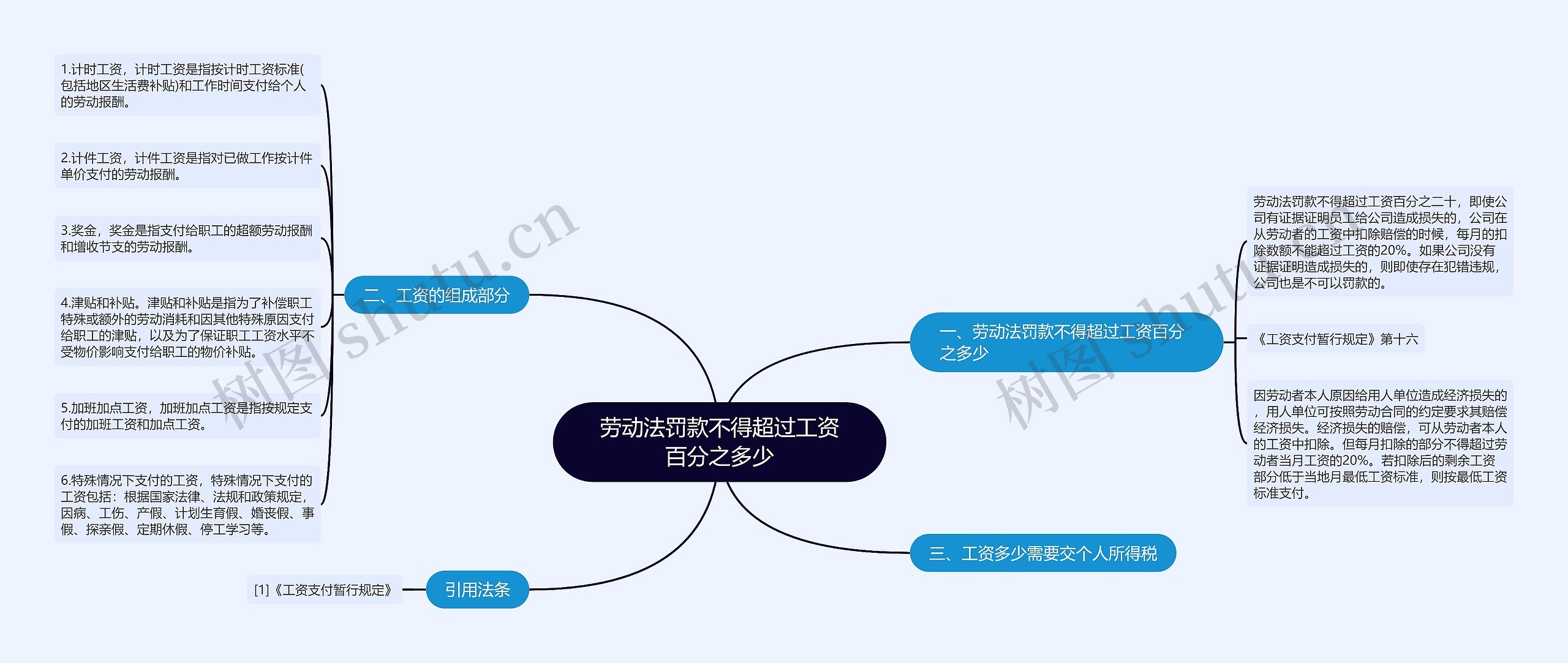 树图思维导图提供《劳动法罚款不得超过工资百分之多少》在线思维导图免费制作,点击“编辑”按钮,可对《劳动法罚款不得超过工资百分之多少》进行在线思维导图编辑,本思维导图属于思维导图模板主题,文件编号是:9d2f100909cf8d43b9db4ed667dfae7c