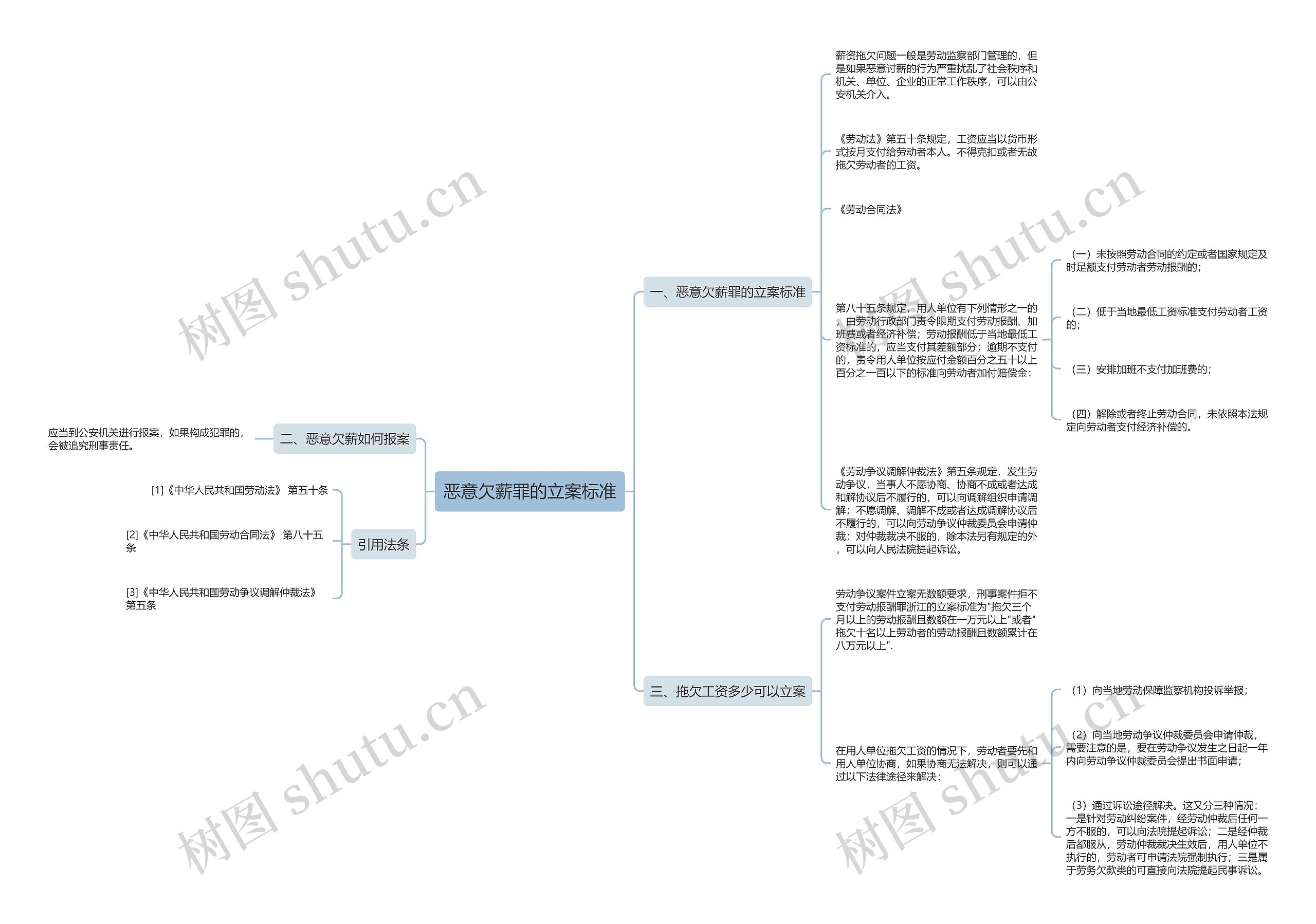 树图思维导图提供《恶意欠薪罪的立案标准》在线思维导图免费制作,点击“编辑”按钮,可对《恶意欠薪罪的立案标准》进行在线思维导图编辑,本思维导图属于思维导图模板主题,文件编号是:7ce2a32d05041f0a60009a31a0042f6e