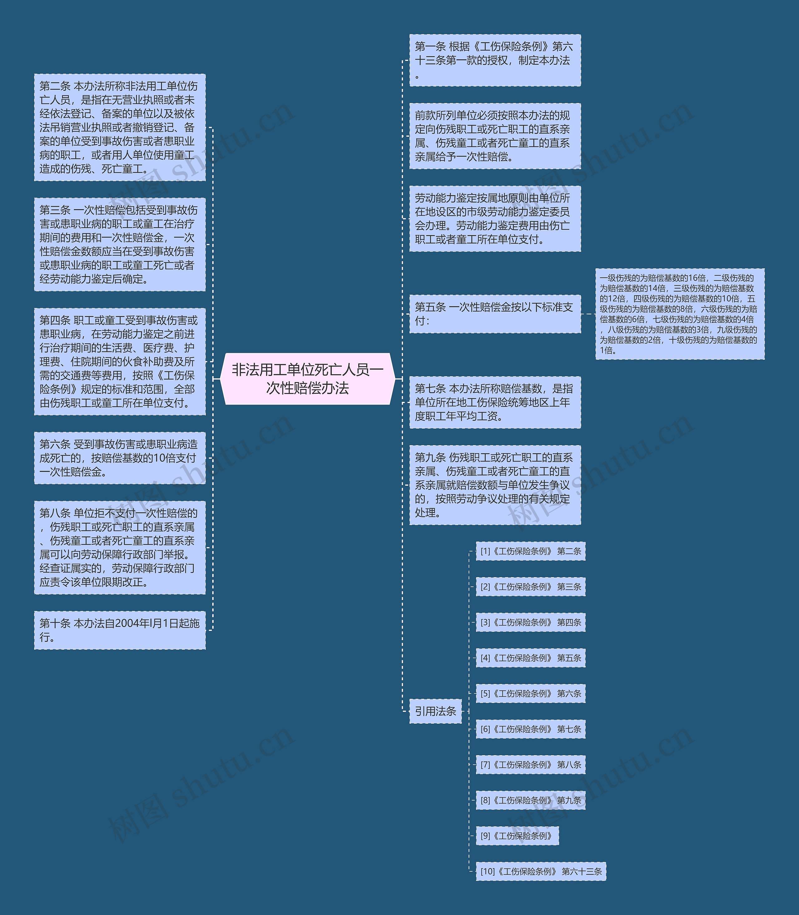 第六条 受到事故伤害或患职业病造成死亡的,按赔偿基数的10倍支付一次性赔偿金。