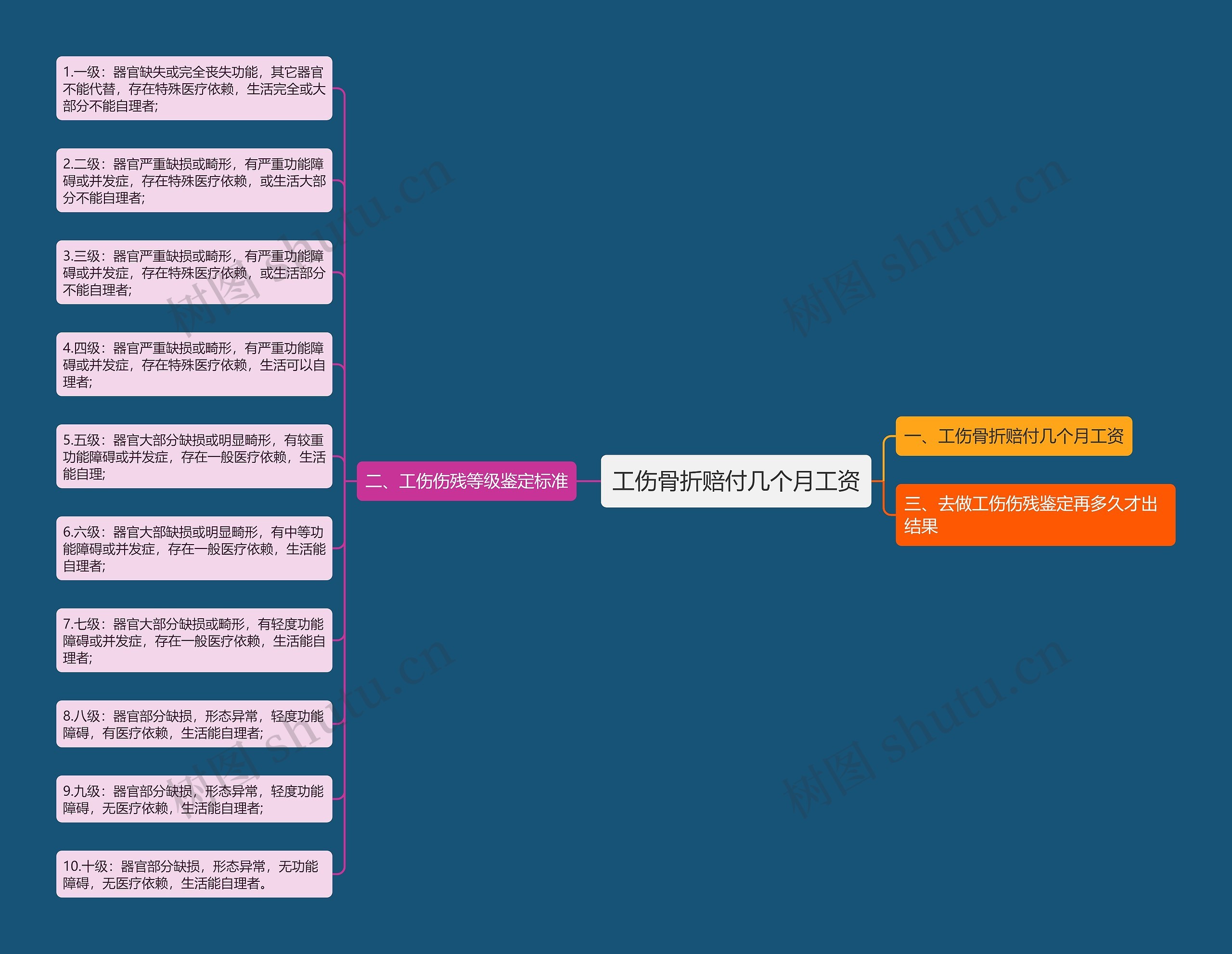 树图思维导图提供《工伤骨折赔付几个月工资》在线思维导图免费制作,点击“编辑”按钮,可对《工伤骨折赔付几个月工资》进行在线思维导图编辑,本思维导图属于思维导图模板主题,文件编号是:17480c4ead5be54b274072782a8a5d7f