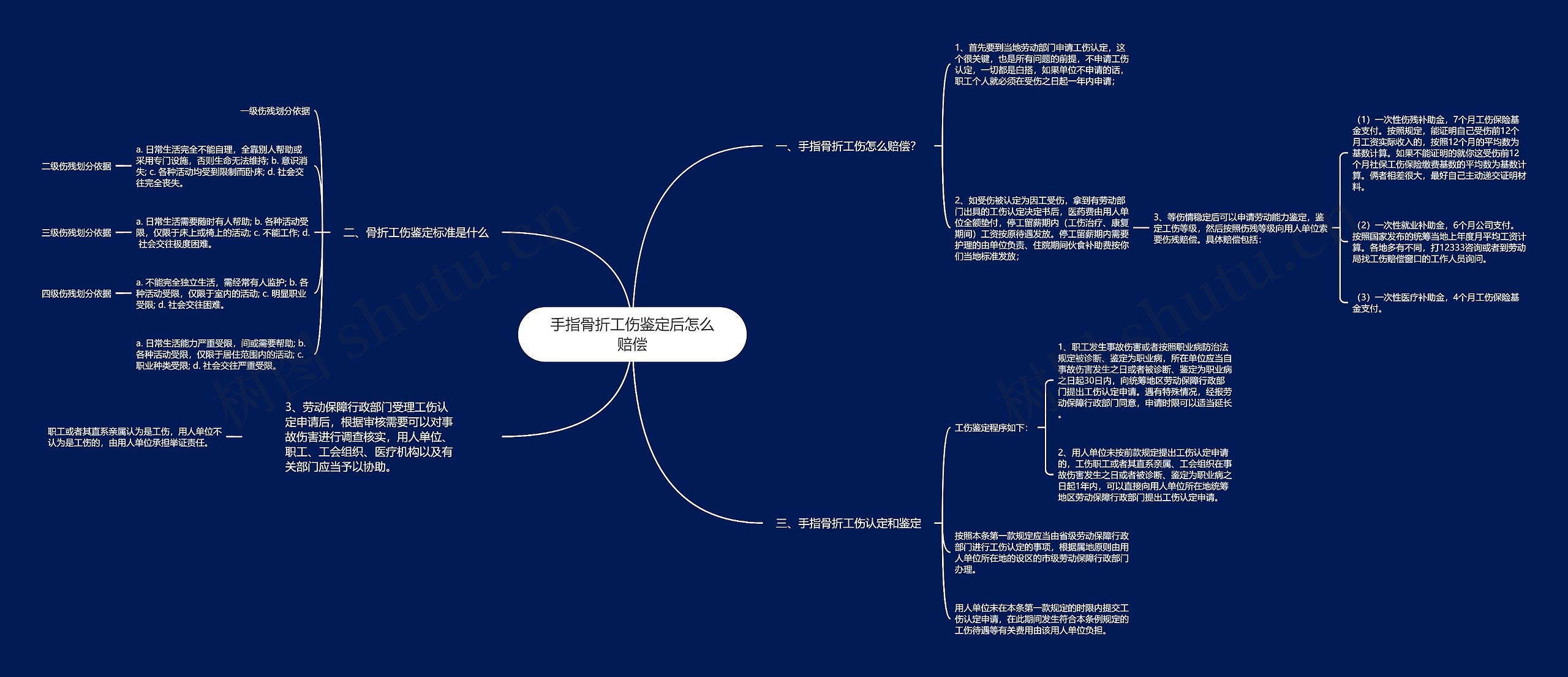树图思维导图提供《手指骨折工伤鉴定后怎么赔偿》在线思维导图免费制作,点击“编辑”按钮,可对《手指骨折工伤鉴定后怎么赔偿》进行在线思维导图编辑,本思维导图属于思维导图模板主题,文件编号是:9f0052875acffd69aa7751c5dd90dcd6