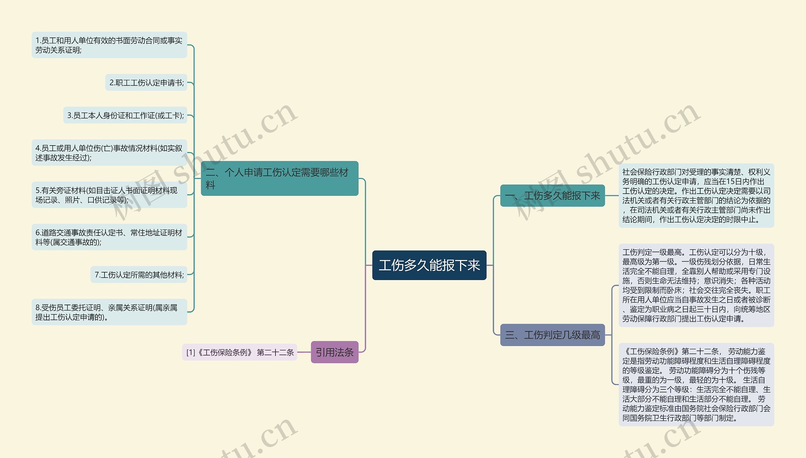 树图思维导图提供《工伤多久能报下来》在线思维导图免费制作,点击“编辑”按钮,可对《工伤多久能报下来》进行在线思维导图编辑,本思维导图属于思维导图模板主题,文件编号是:63dbd15524881c49eda35a688aa7b57b