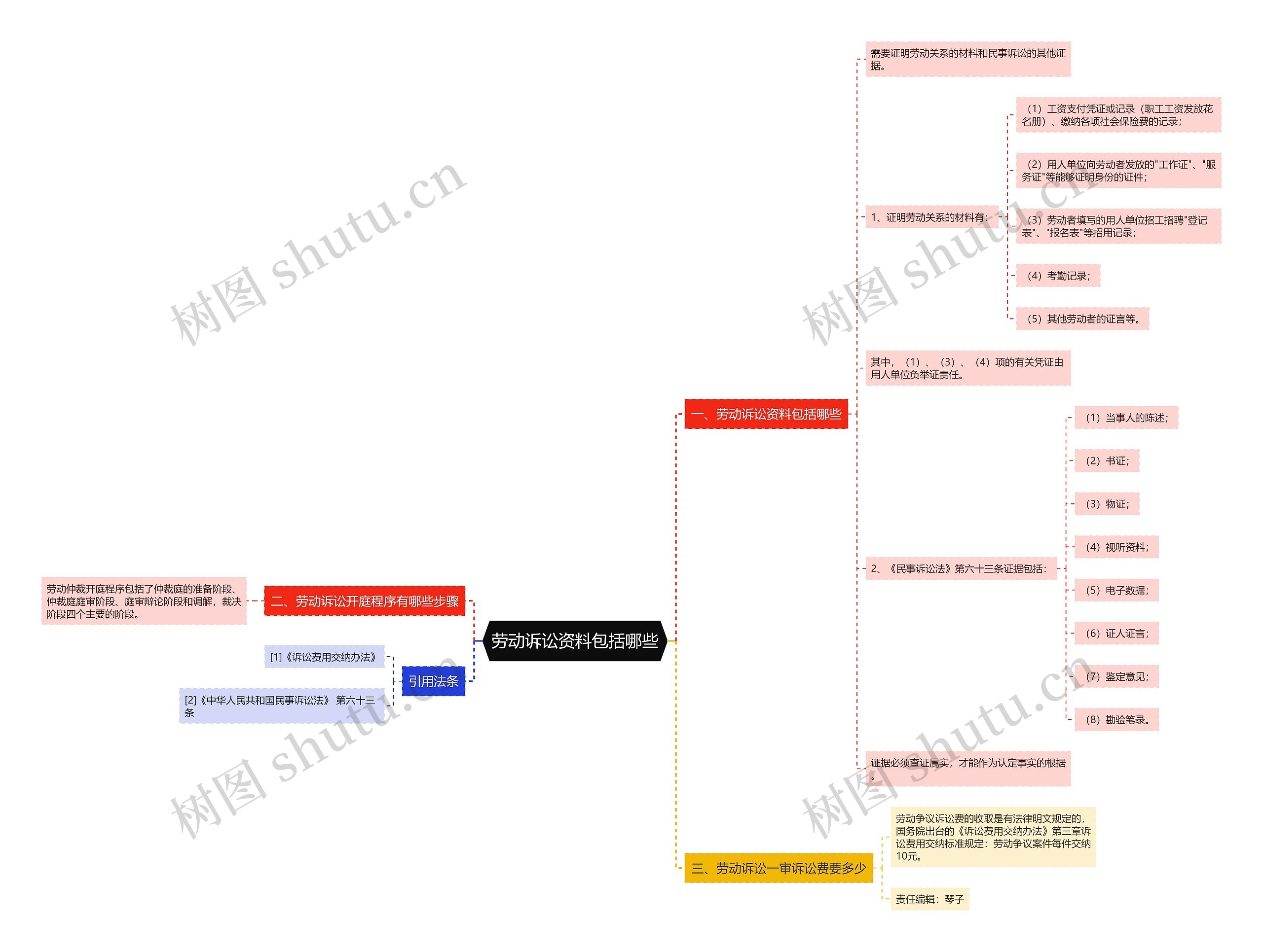 树图思维导图提供《劳动诉讼资料包括哪些》在线思维导图免费制作,点击“编辑”按钮,可对《劳动诉讼资料包括哪些》进行在线思维导图编辑,本思维导图属于思维导图模板主题,文件编号是:af42b2cbc6b9a92317a0f7b7cc814699