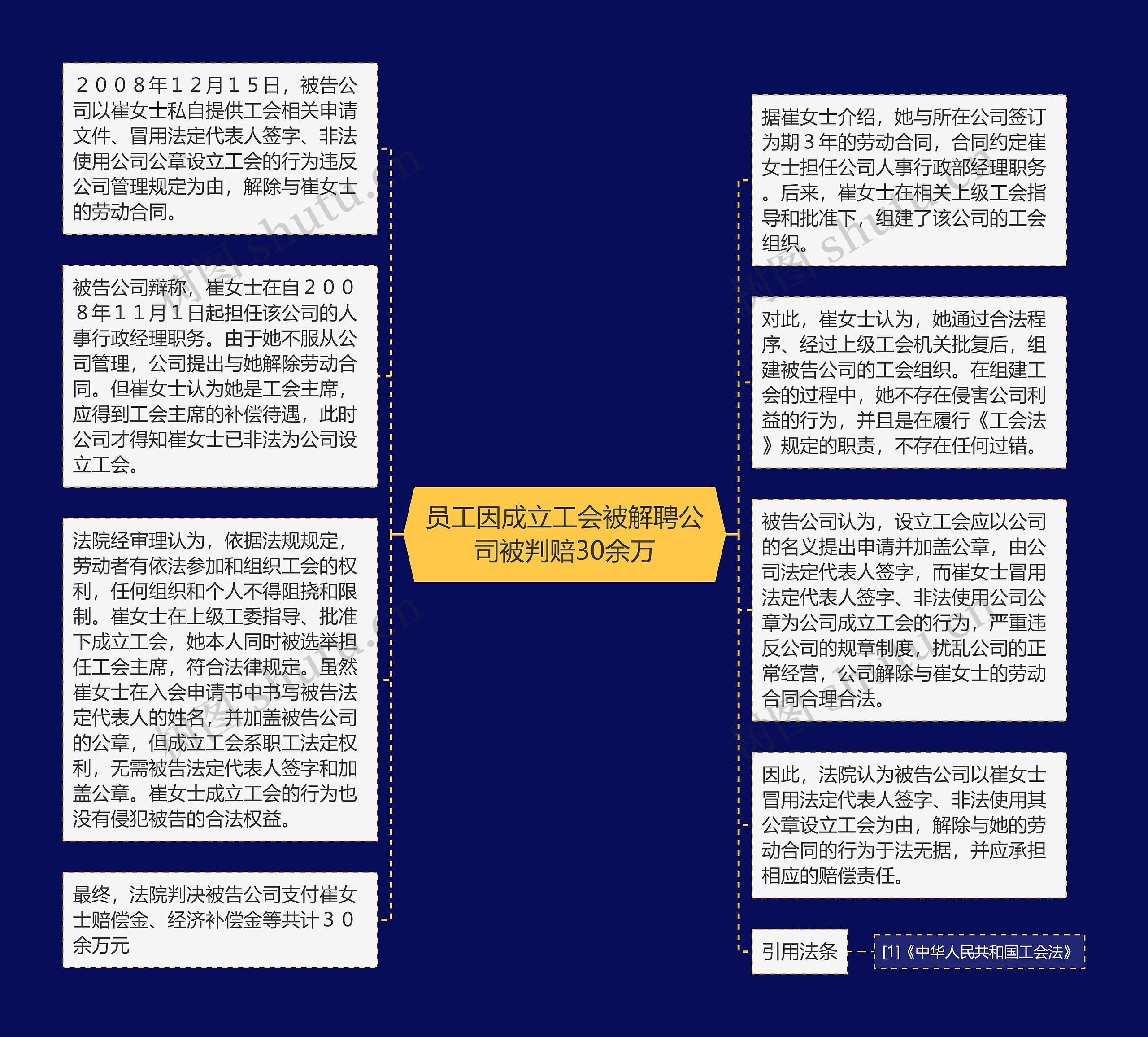 被告公司辩称,崔女士在自2008年11月1日起担任该公司的人事行政经理职务。由于她不服从公司管理,公司提出与她解除劳动合同。但崔女士认为她是工会主席,应得到工会主席的补偿待遇,此时公司才得知崔女士已非法为公司设立工会。